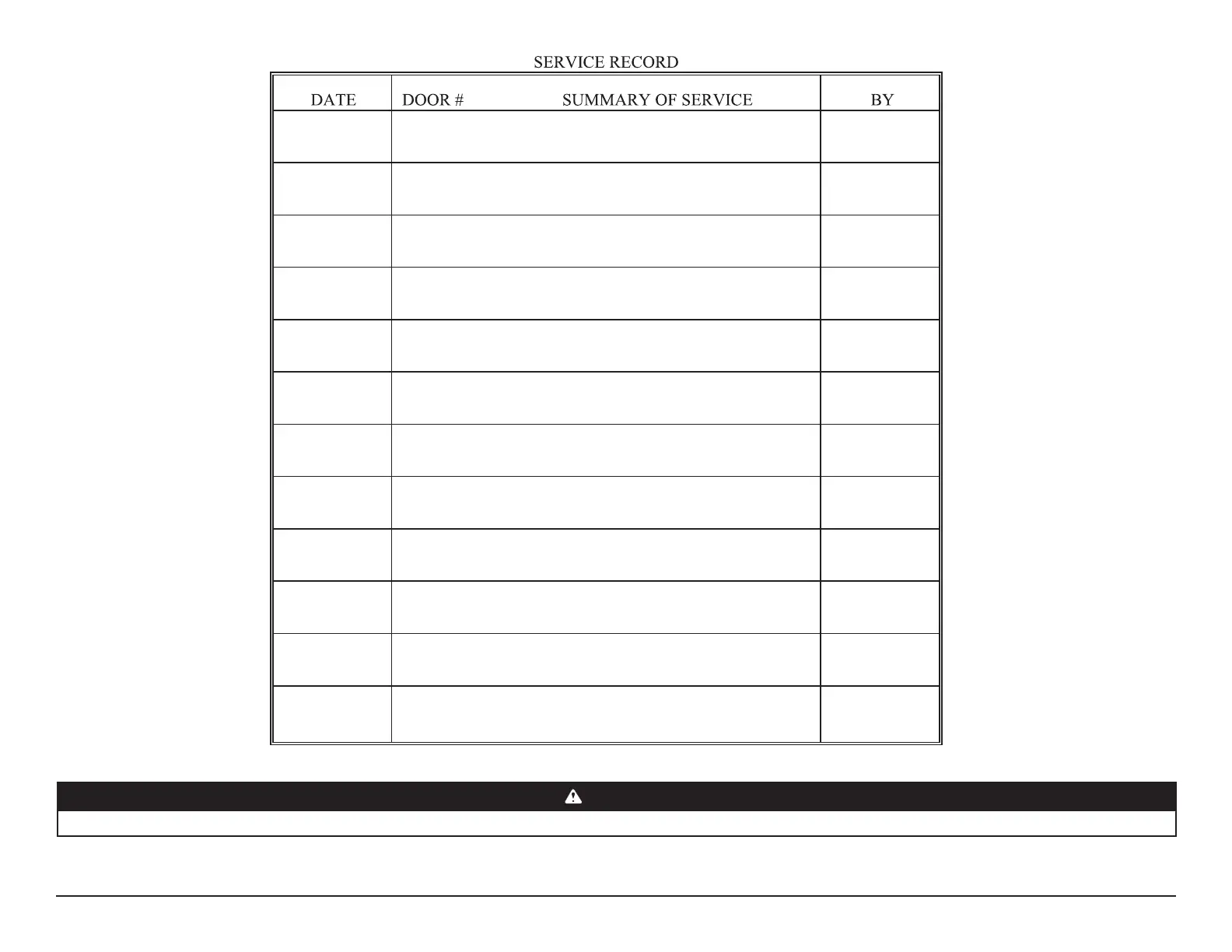 ALL REPAIRS, ADJUSTMENTS AND MAINTENANCE MUST BE DONE BY A TRAINED ROLLING FIRE DOOR SYSTEMS TECHNICIAN.