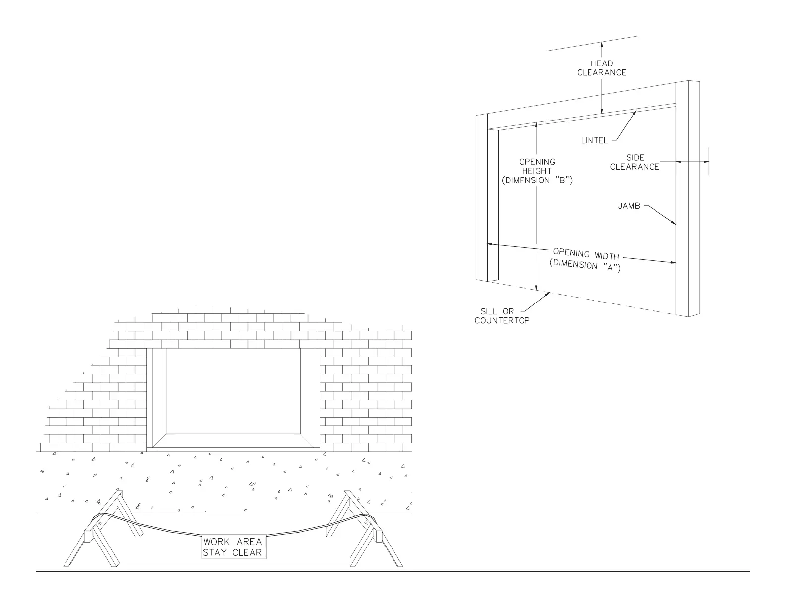 Refer to Figure 3. Check the opening width “A” and the opening height “B” or “F” and compare