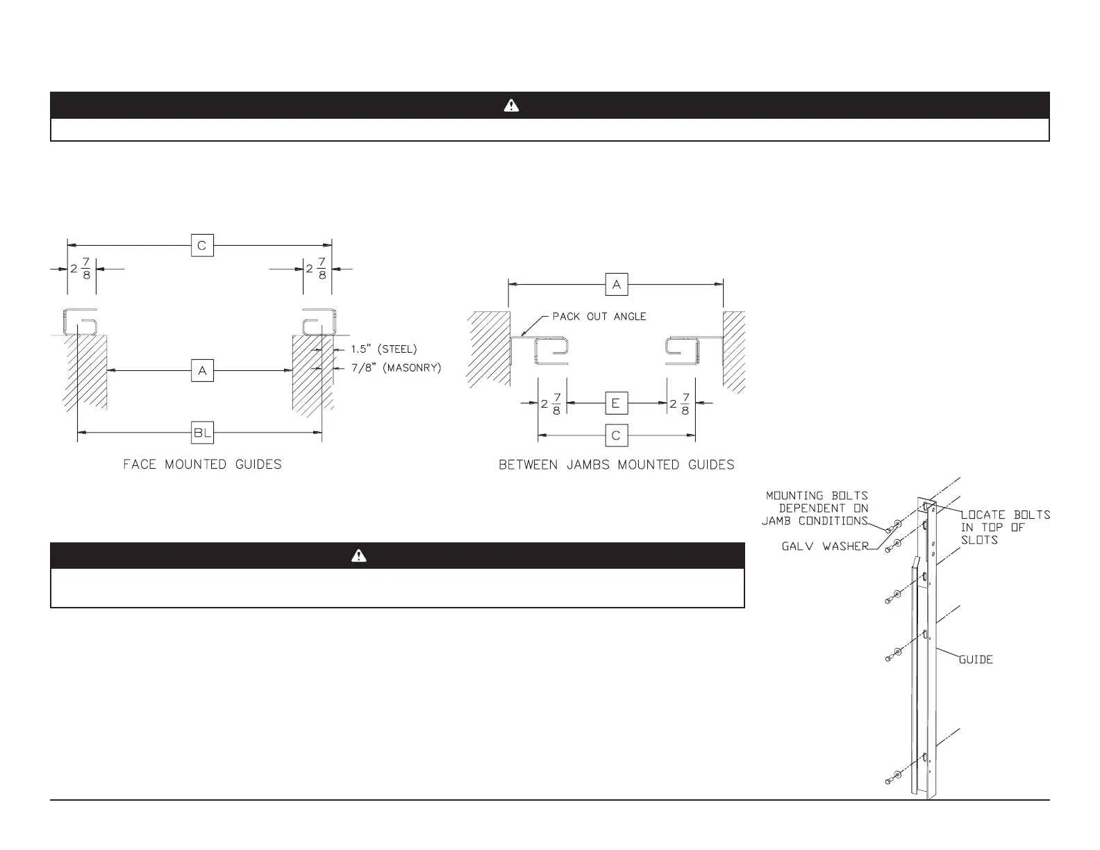 Refer to Figure #4. To determine the location of the “bolt line” (BL) for the guide mounting bolts on the wall, rst locate and mark the center of the opening. Obtain the “C”