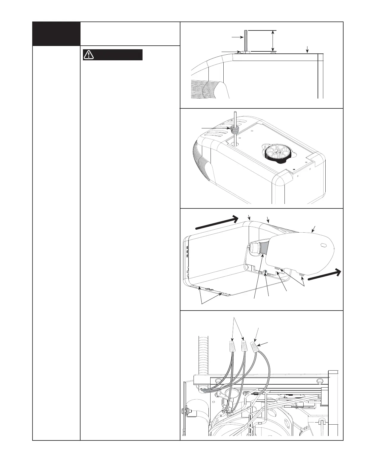 7. Pull the three wires into the opener;
