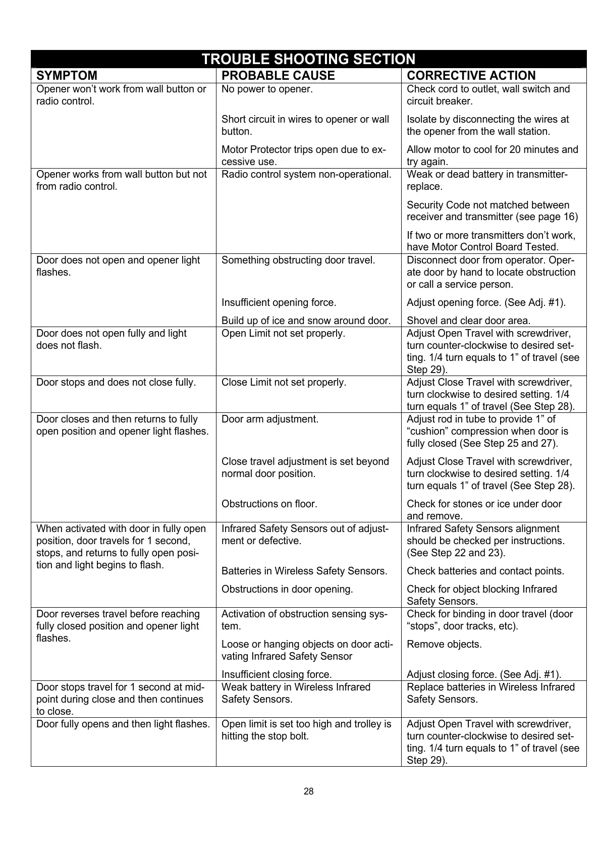 SYMPTOM PROBABLE CAUSE CORRECTIVE ACTION