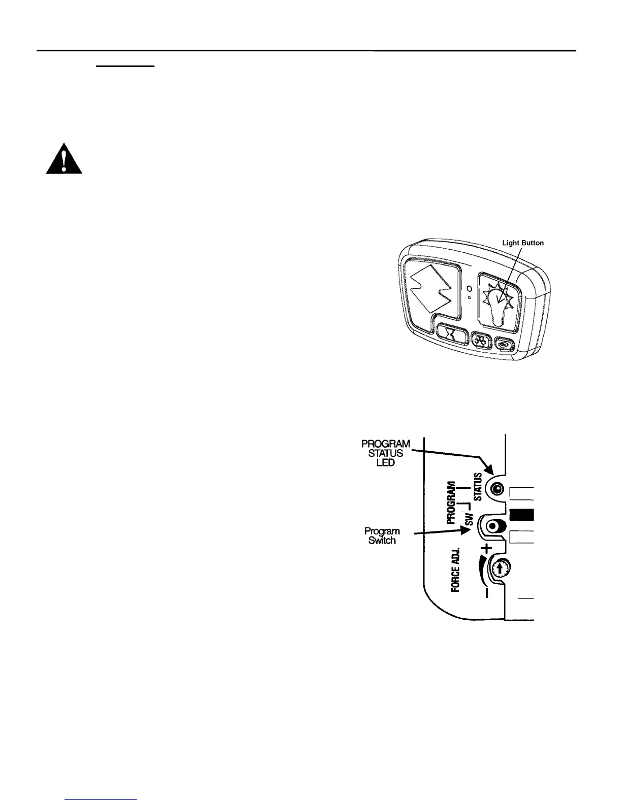 WARNING: During programming the garage door may operate. Keep people and objects clear of the