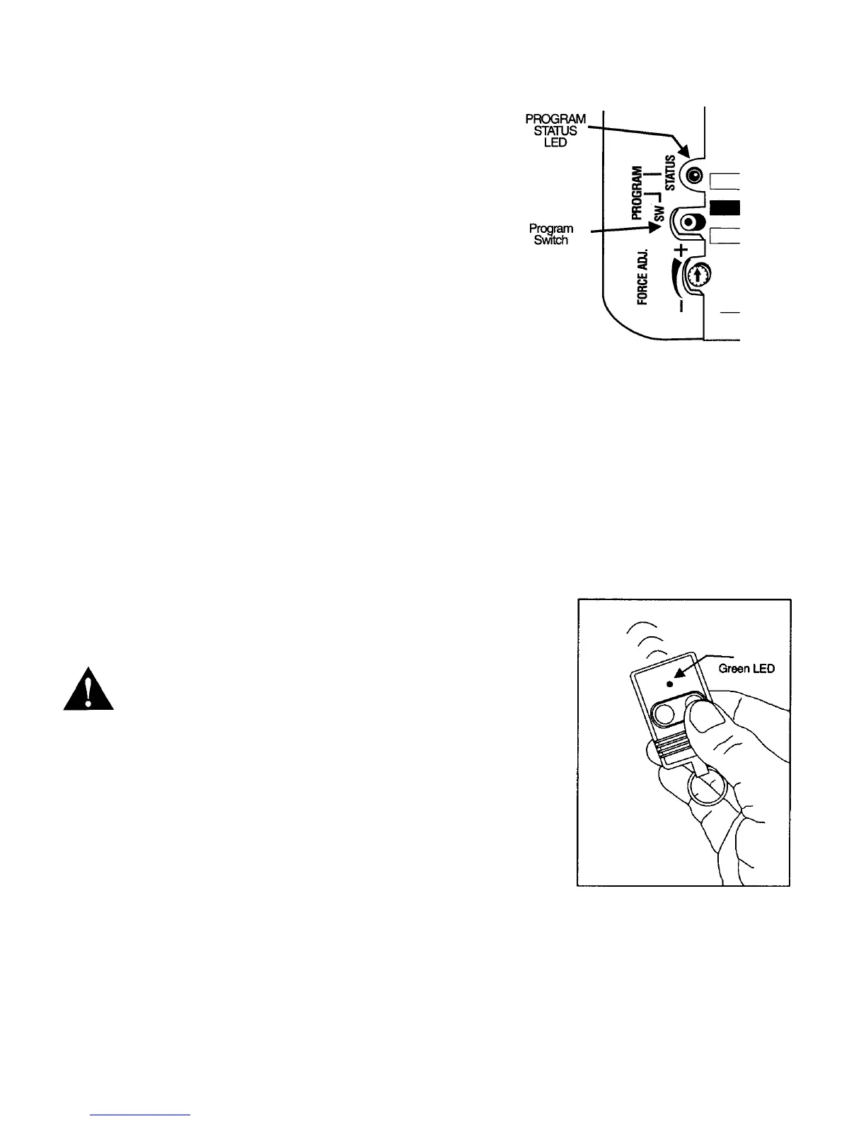 WARNING: During programming the garage door may
