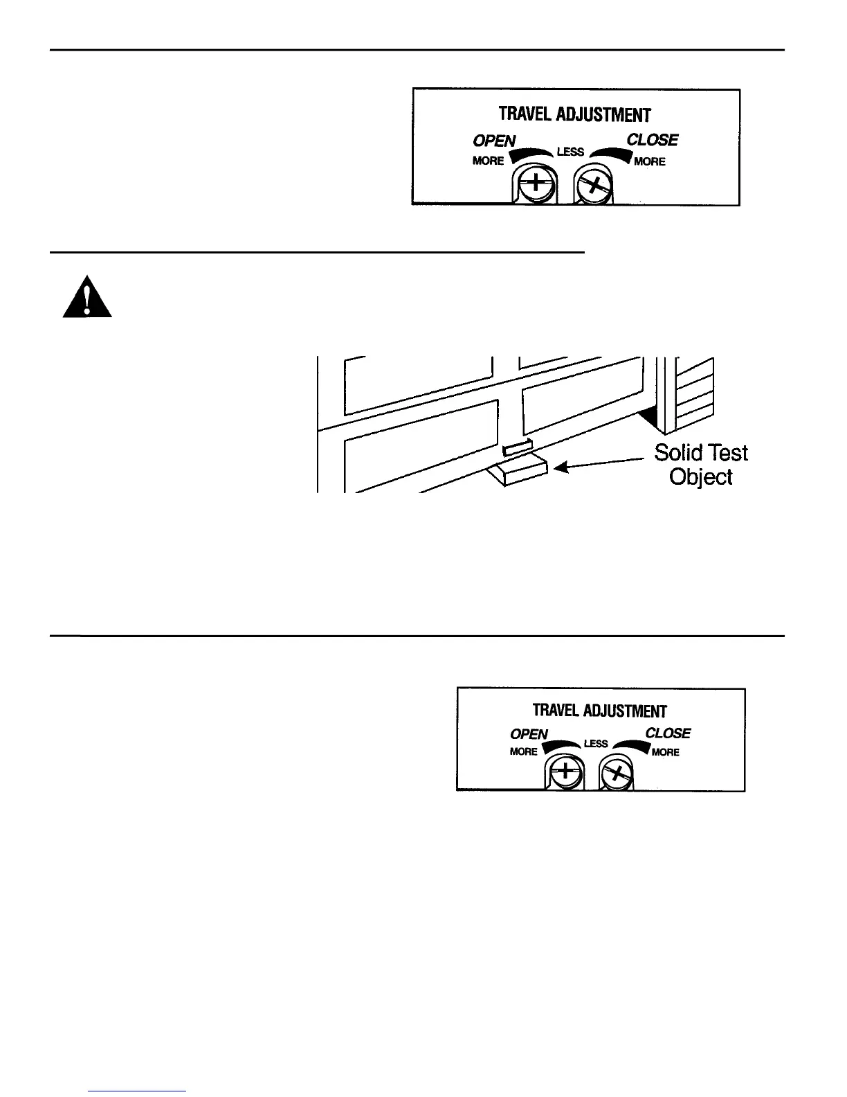 for an obstruction or see Adjustment #1, page 21 (Adjusting Opening Force).