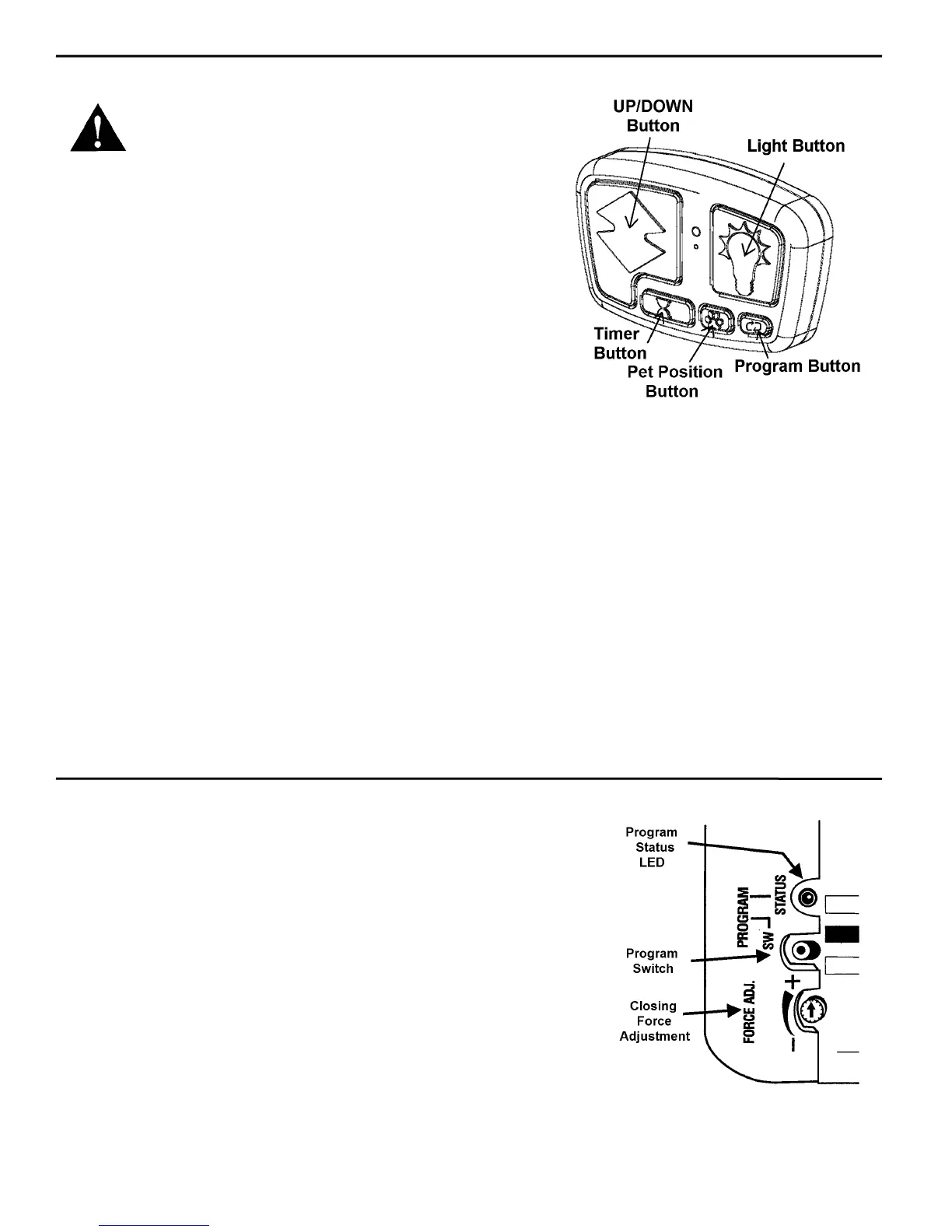 cause the door to close. Pressing the UP/DOWN button while the door is in the pet position will cause the door to