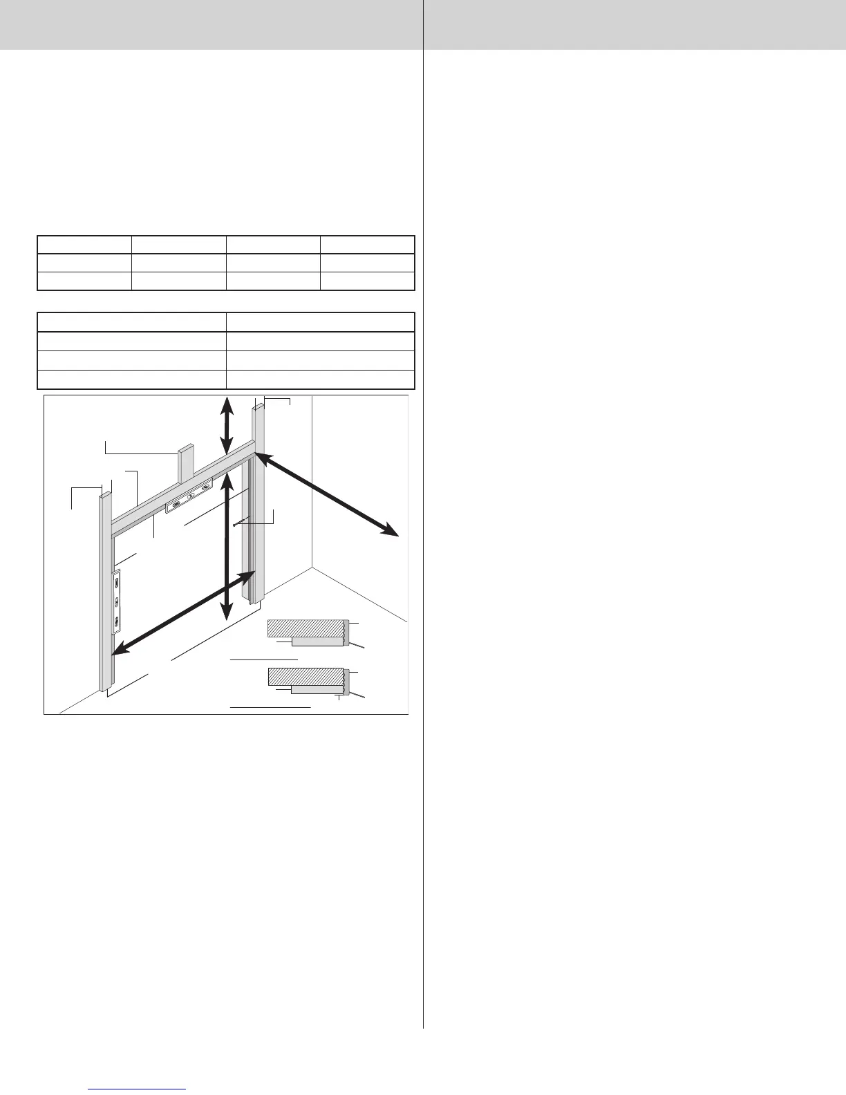 for tracks, springs, etc. to allow the door to open properly. If the door is to be motor operated,