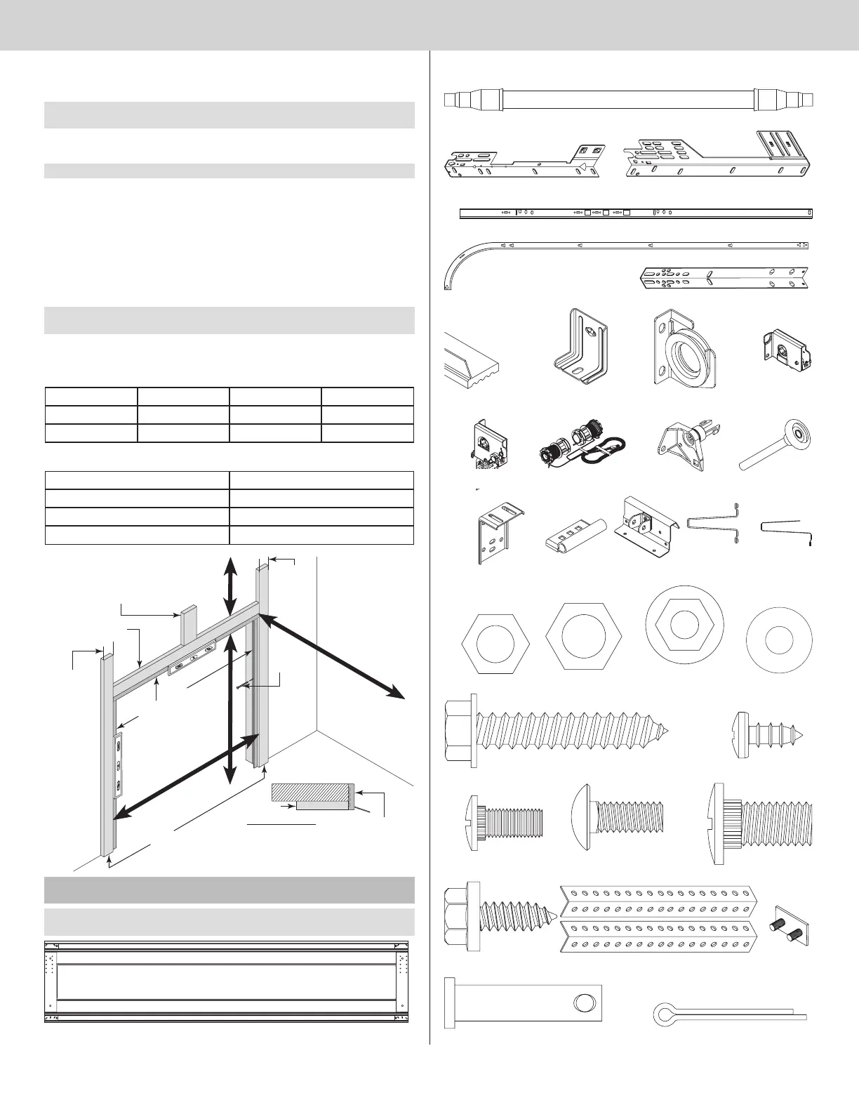 the door for tracks, springs, etc. to allow the door to open properly. If the door is to be motor