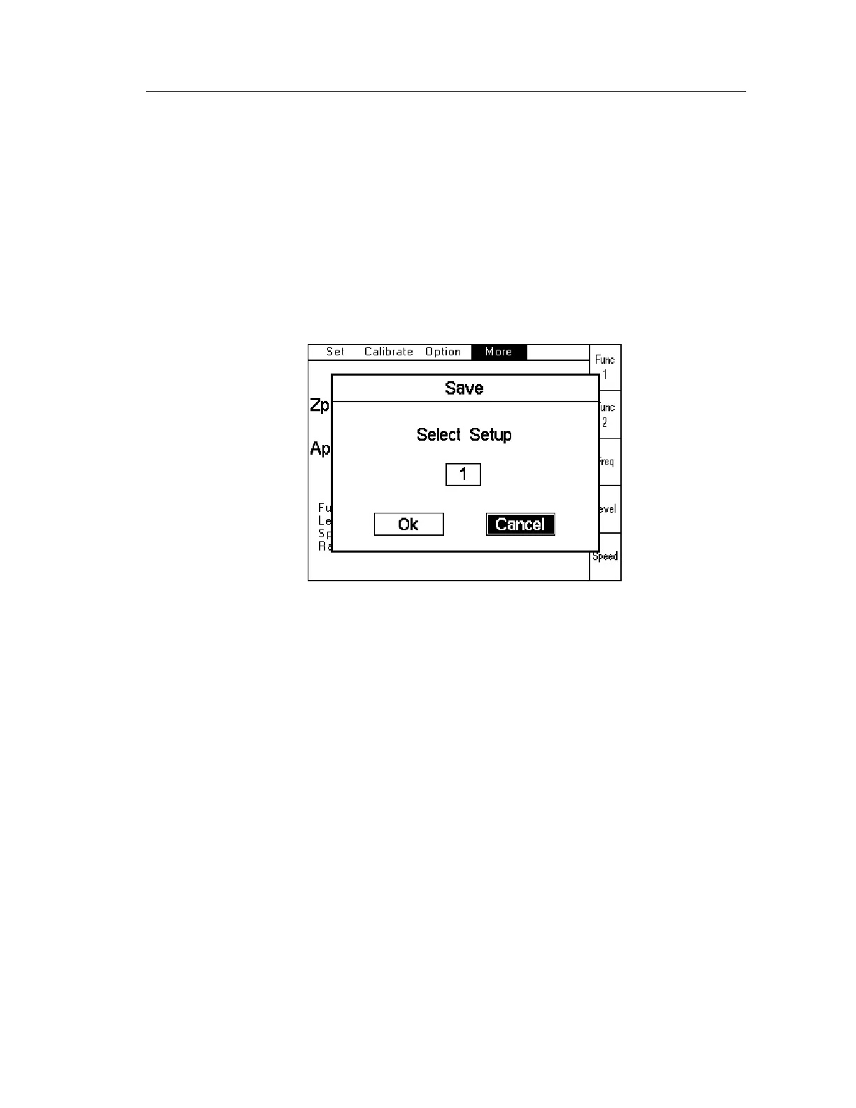 Save allows the current measurement setup to be saved to one of 20 memory locations within
