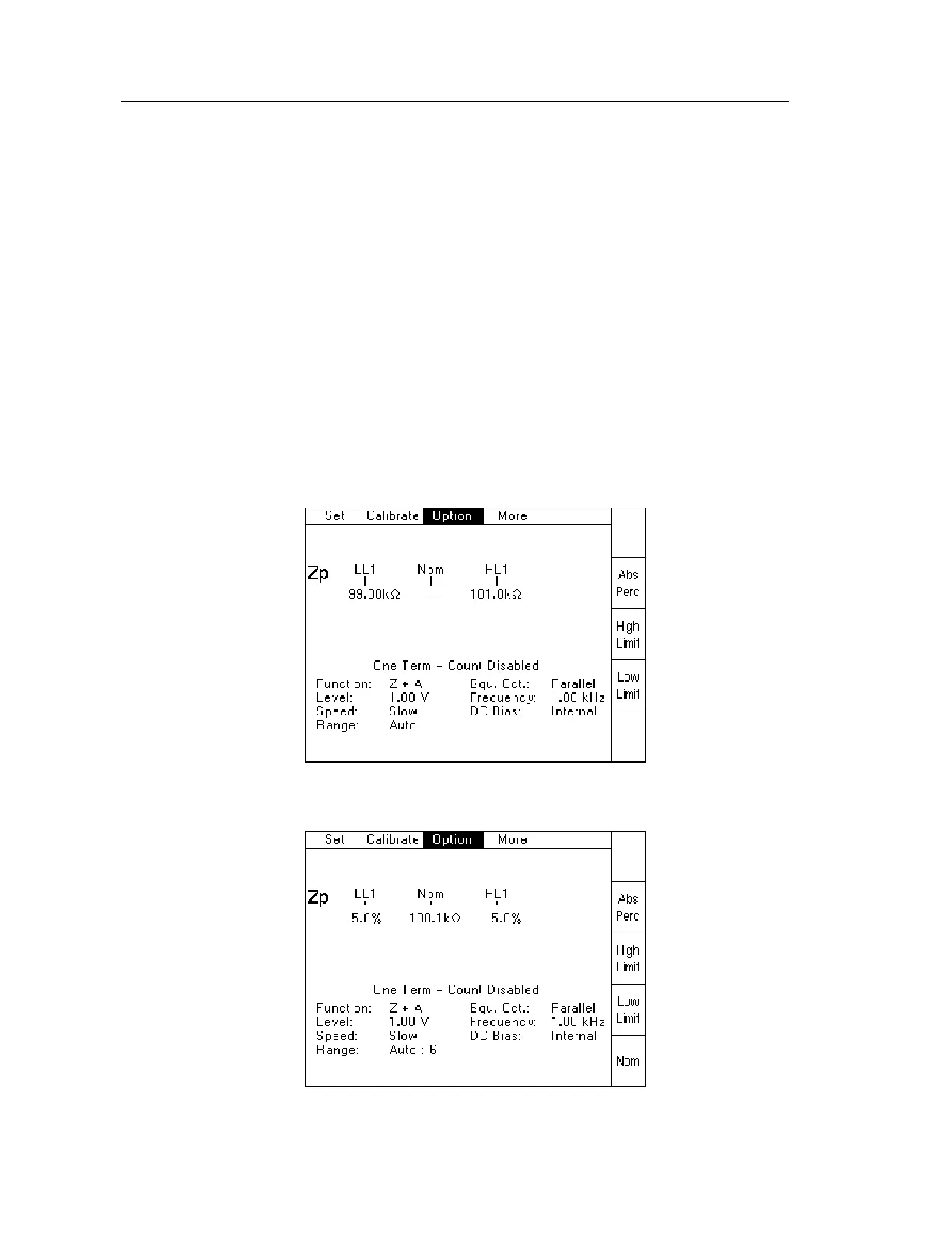 One of two screens will be displayed when the One Term Binning Type has been selected,