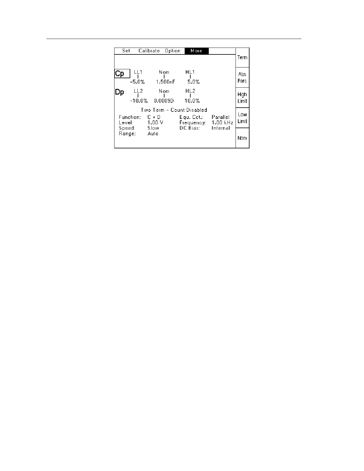 for the parameter being set. For example, when the active Term is C(apacitance), the soft keys