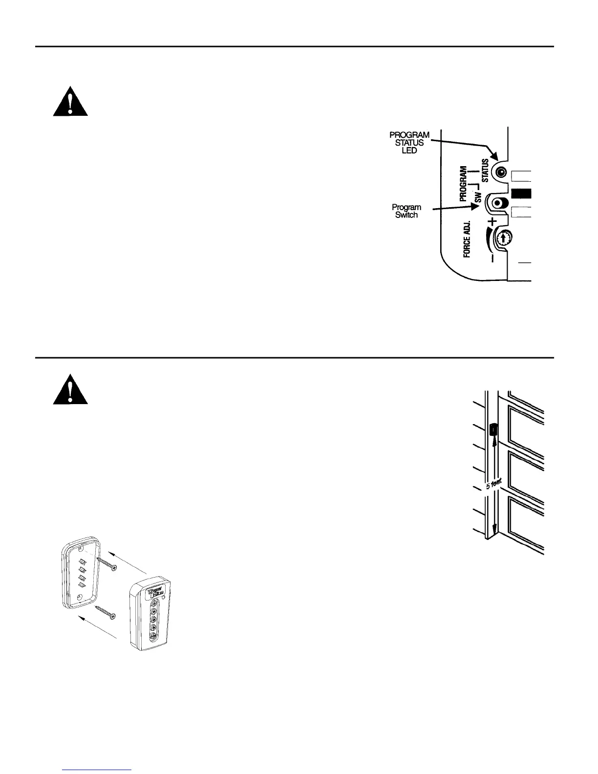 WARNING: During programming the garage door may operate. Keep people and objects clear of