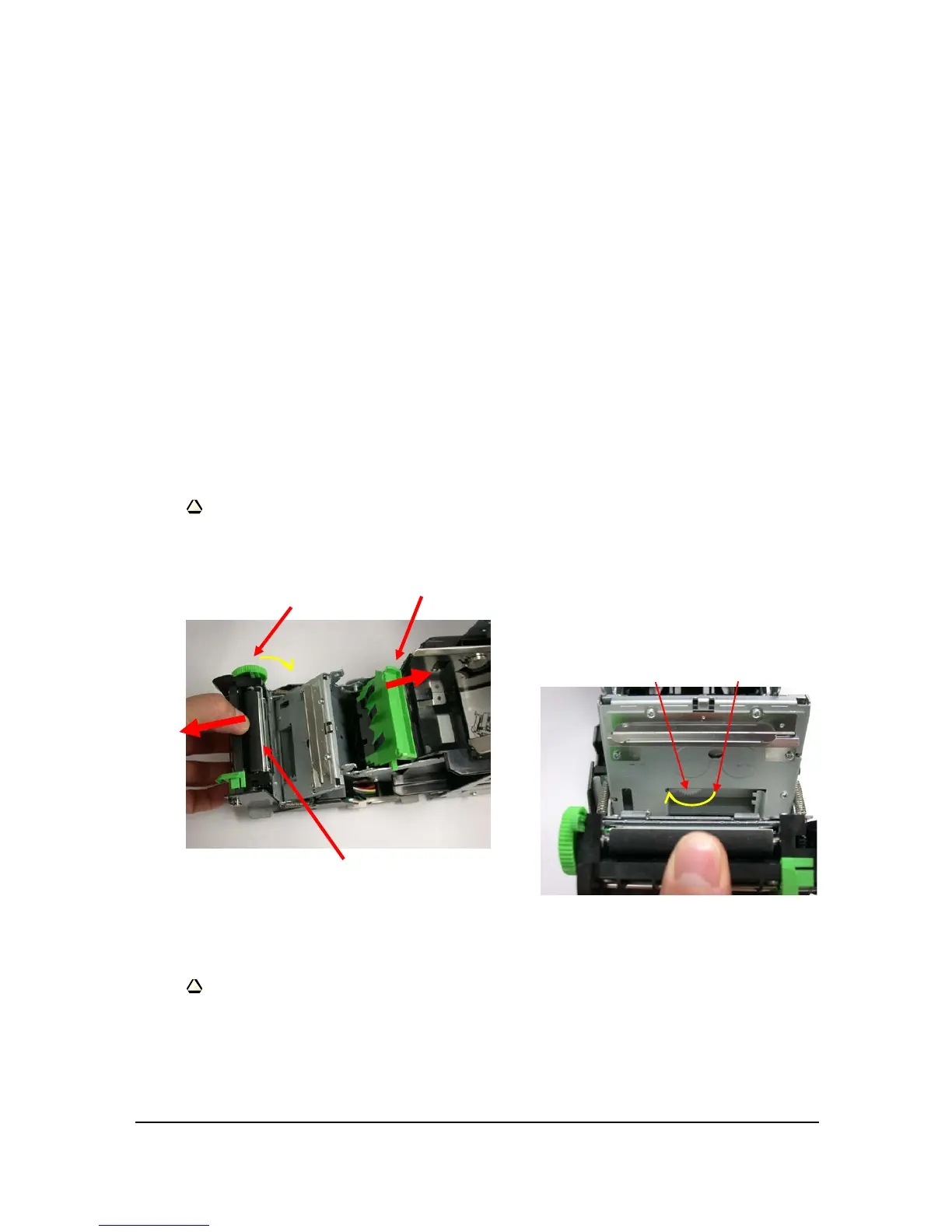 Note: If the print head is jammed, open the print head as shown above and wipe off
