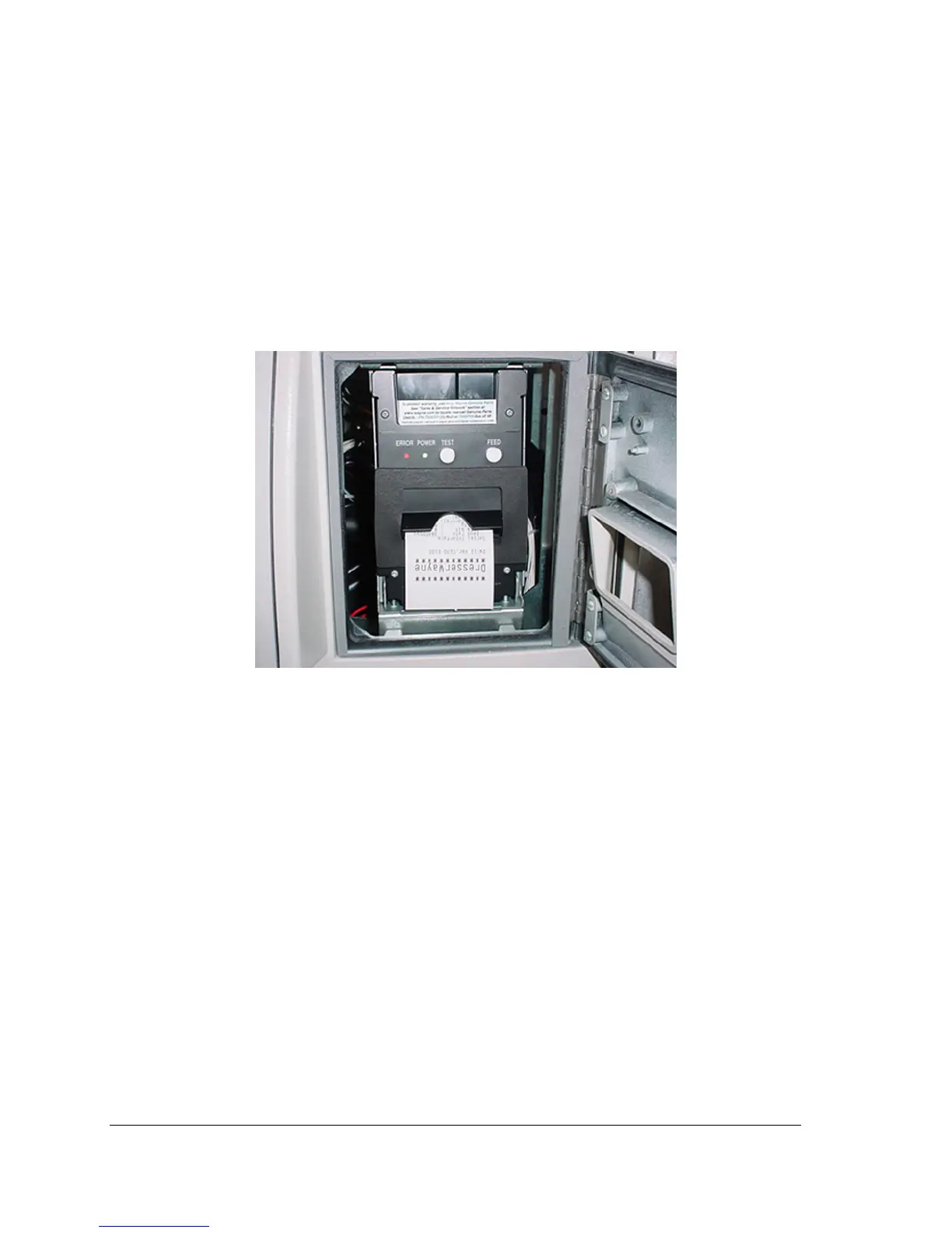 Once the printer door on the dispenser is unlocked and opened, the printer will appear