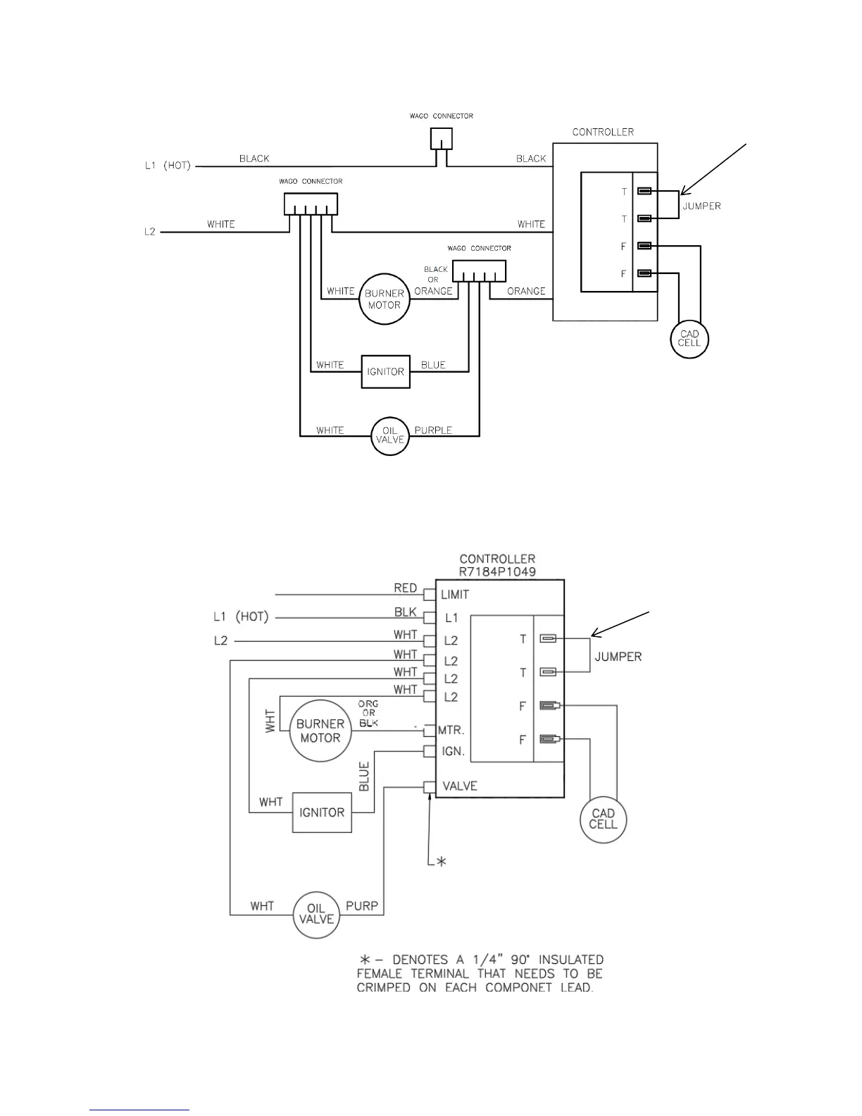Figure 3- Wiring Diagram for 120V Honeywell R7284G & 230V Honeywell R8184G Controls