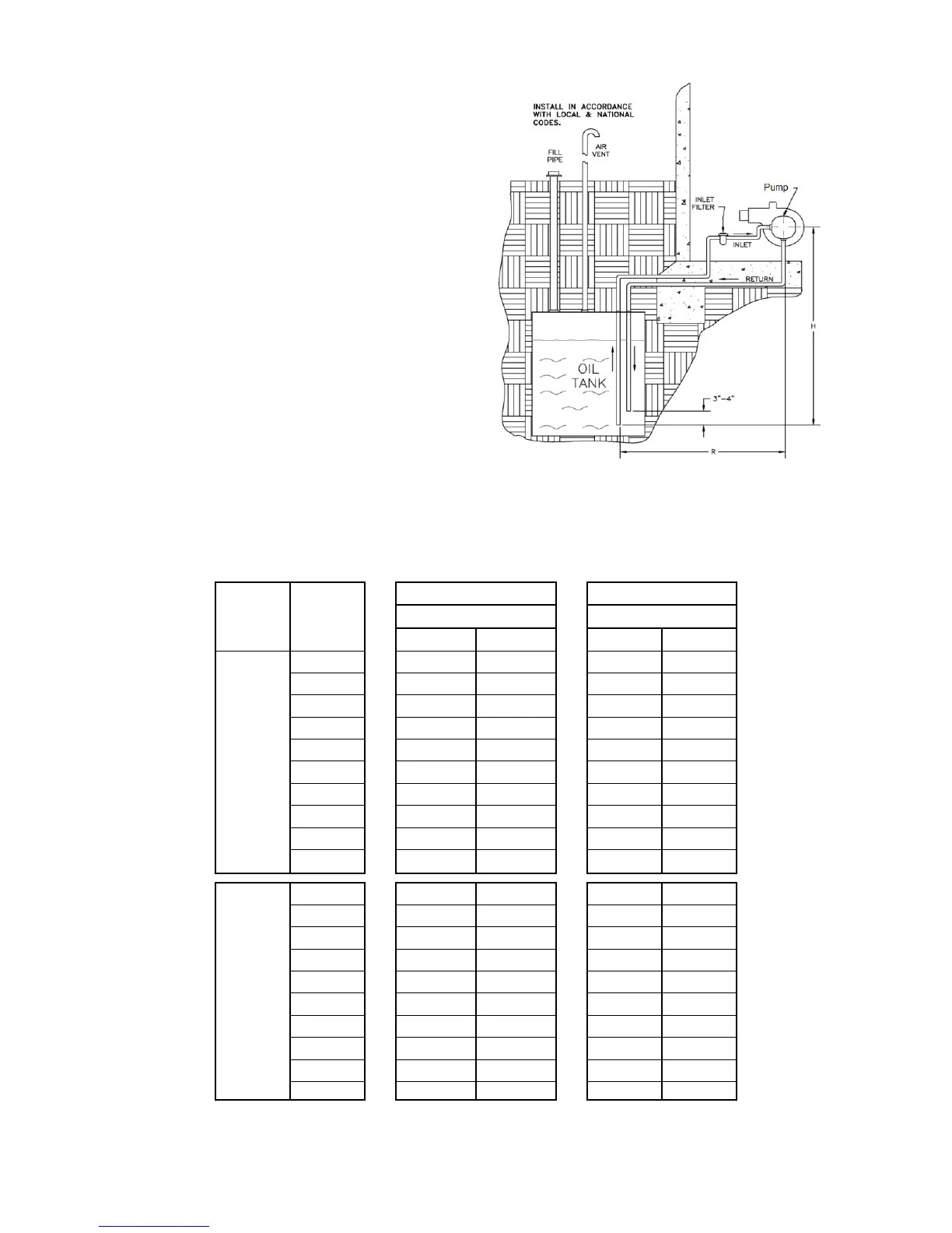 NOTE: Max. total line length L=H + R, values were calculated based off a fuel viscosity of 57 SSU. Elbows, valves & filters