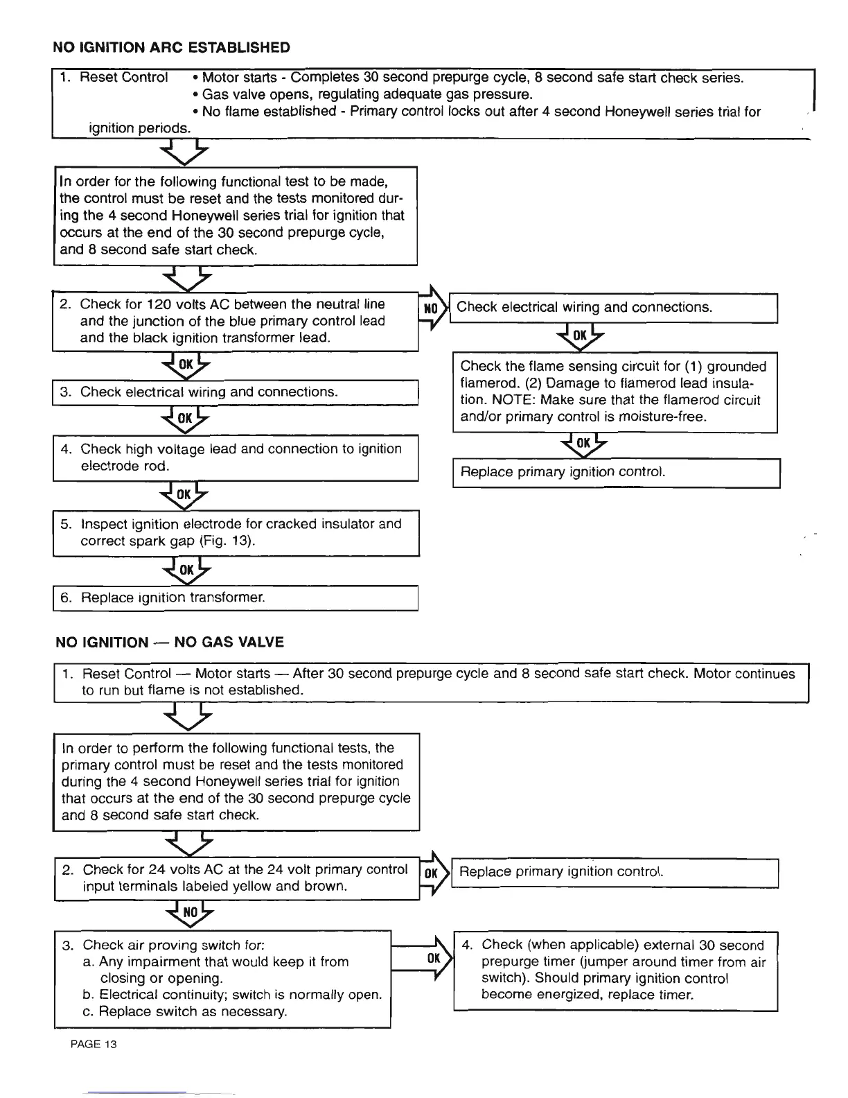 • No flame established - Primary control locks out after 4 second Honeywell series trial for
