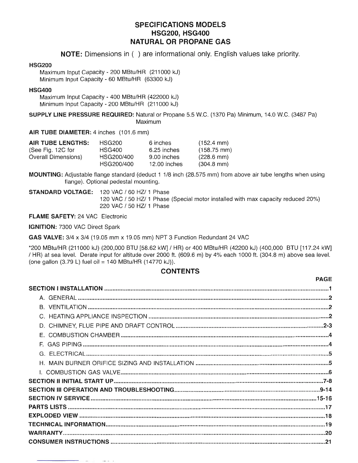 Maximum Input Capacity - 200 MBtu/HR (211000 kJ)