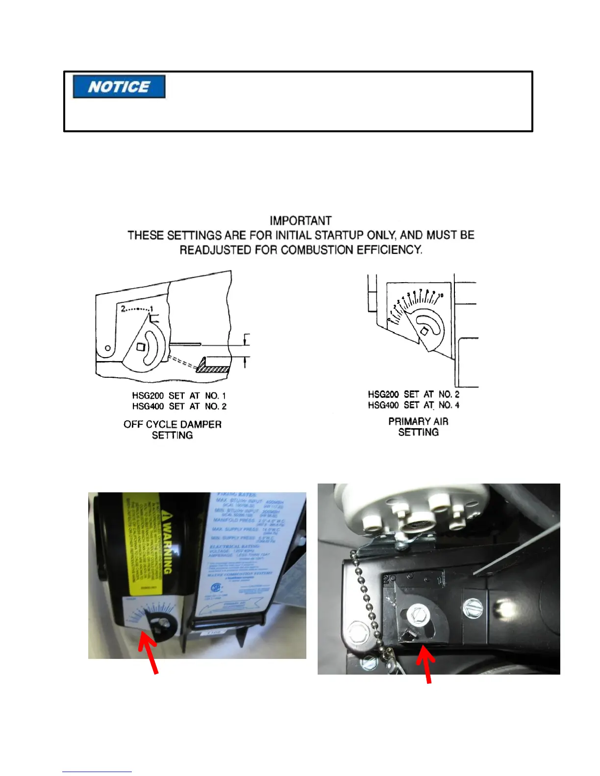 2. Adjust the primary air and off-cycle damper to the start-up settings shown in Figure18.