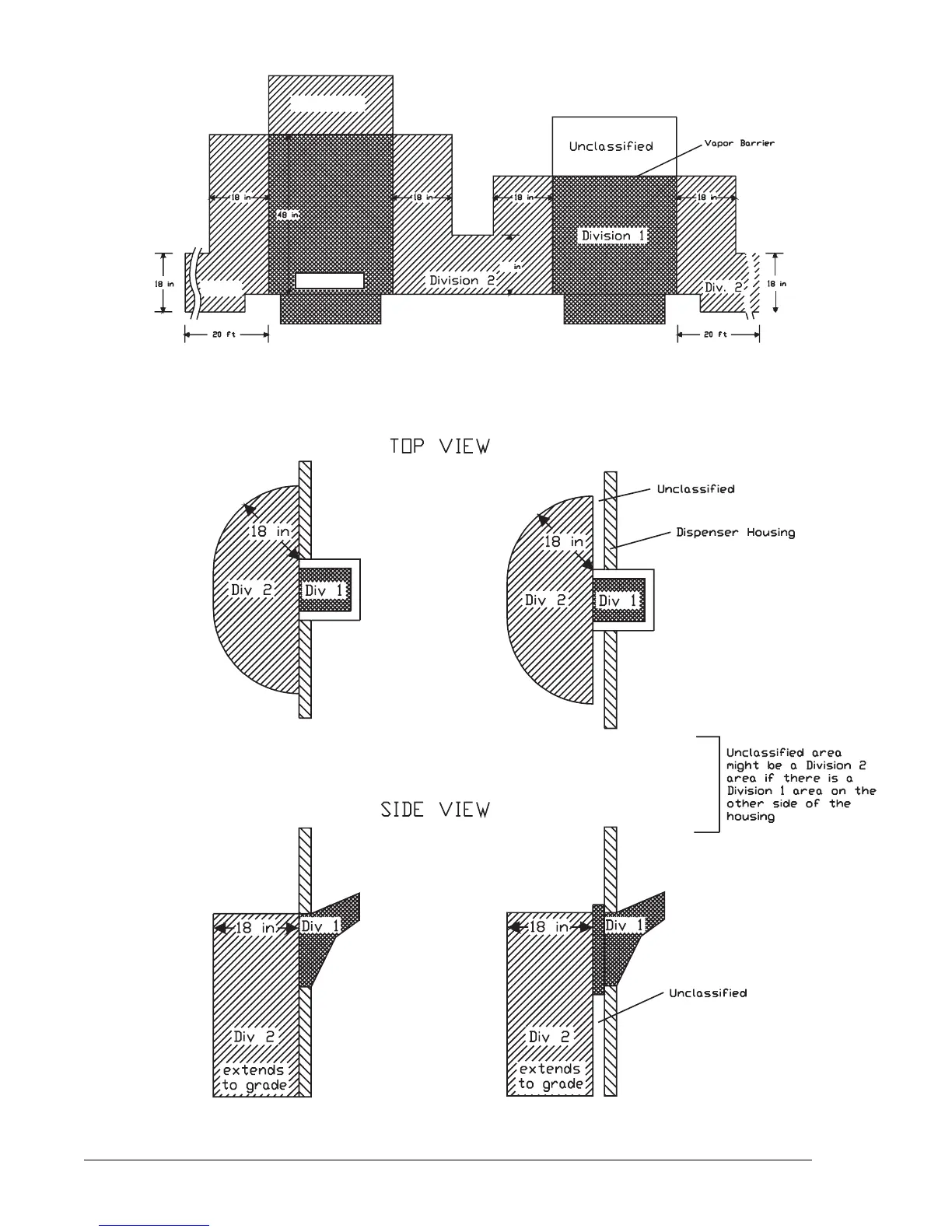Figure 4-2 Hazardous Zone Area Classifications for Dispensers.