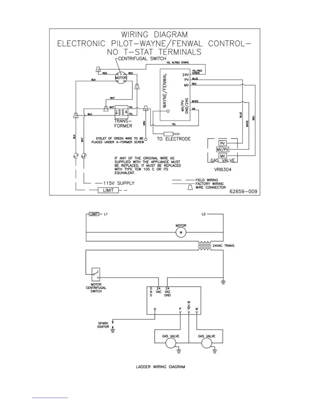 FIGURE 25: WIRING DIAGRAMS FOR GAS BURNER WITH ELECTRONIC PILOT-NO T-STAT