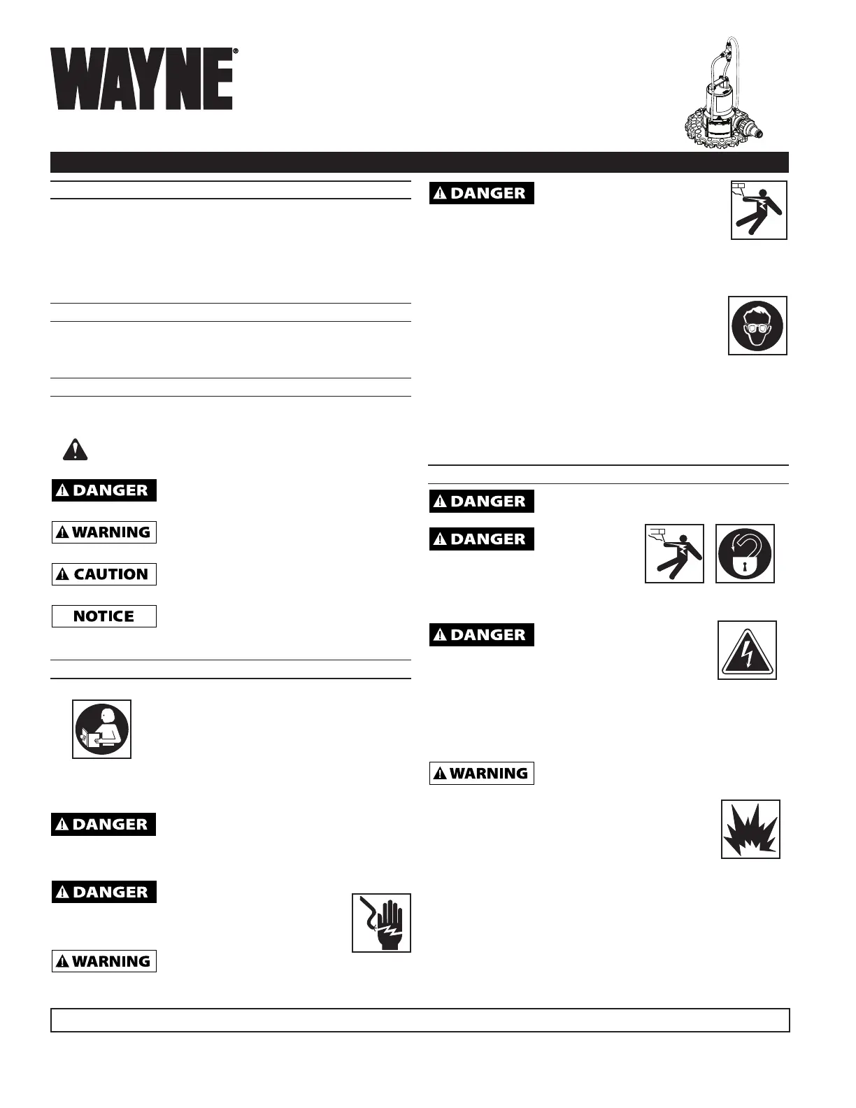 flammable and/or explosive atmosphere. Pump SHOULD be used to pump clear water