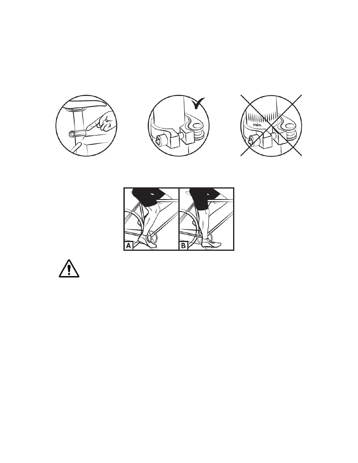 pédale (fig. B). Lors du pédalage, le genou sera légèrement plié avec le pied en position basse (fig. A).