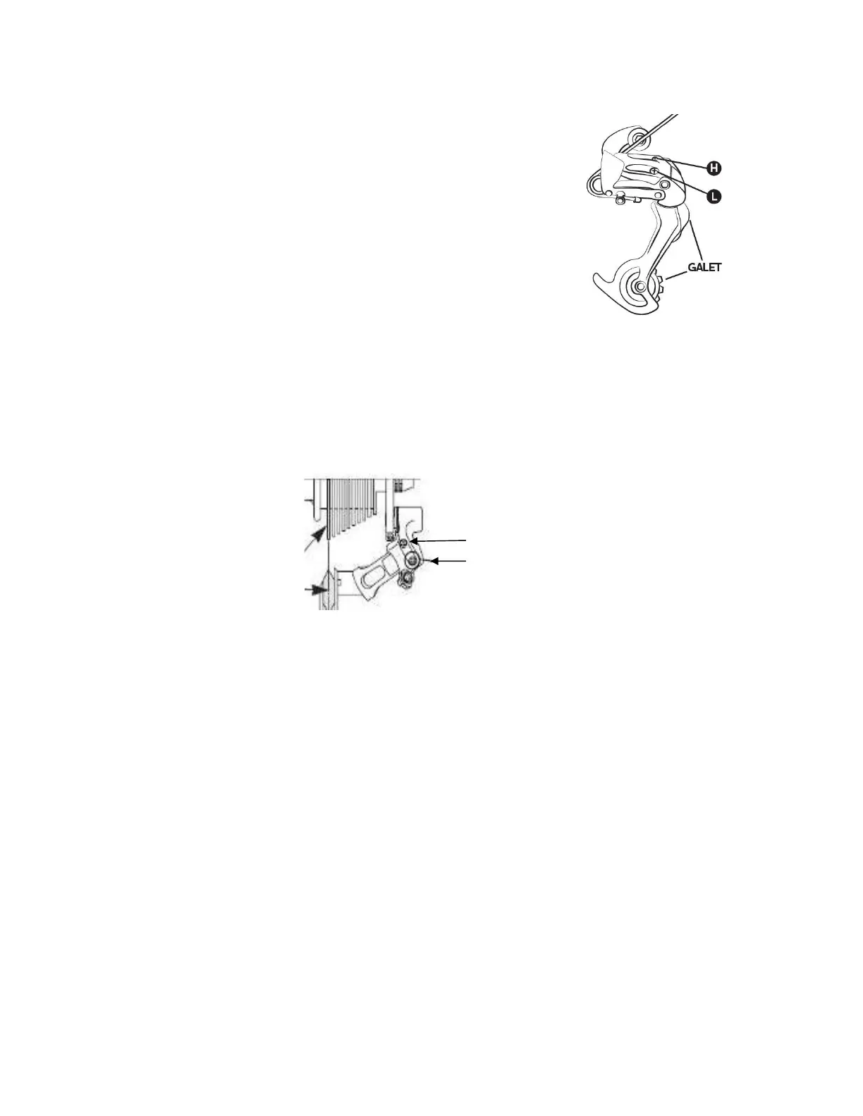 La vis L permet d’ajuster la butée interne (côté grand pignon).