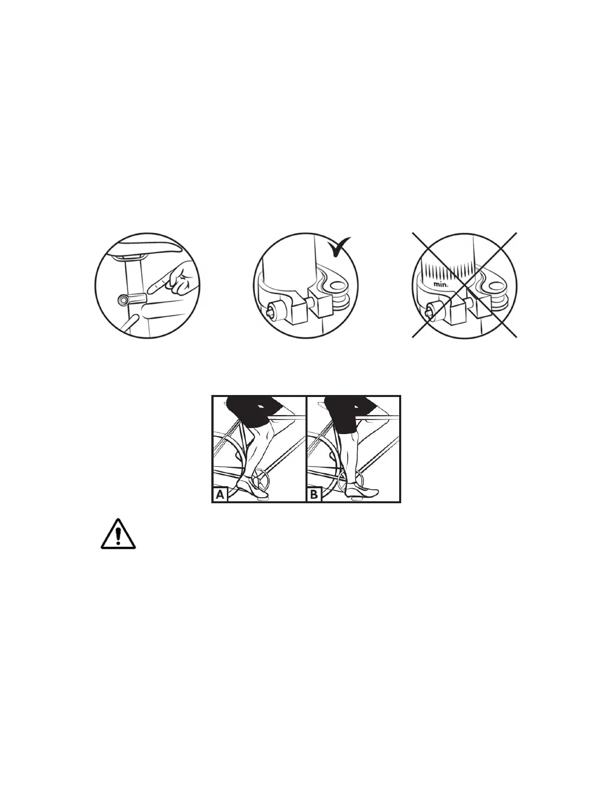 Stellen Sie sicher, dass der Sattel, wenn er in seiner tiefsten Position eingestellt ist, nicht mit einem
