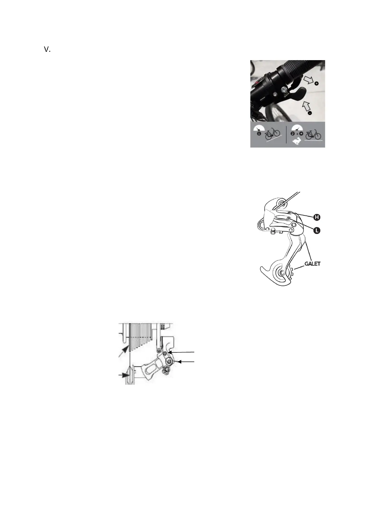 La corsa del deragliatore si regola tramite le viti H e L.