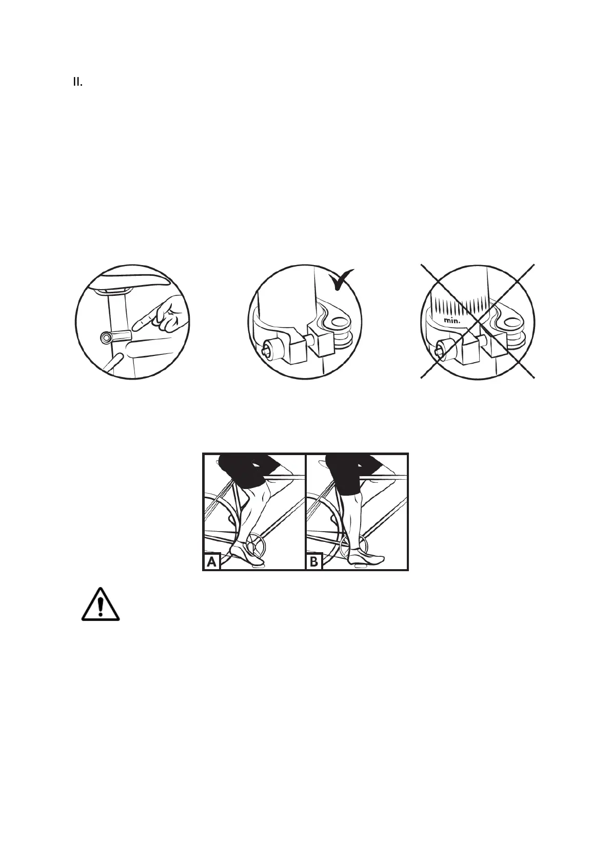 talón sobre el pedal (fig. B). Al pedalear, la rodilla debe doblarse ligeramente cuando el pie esté en la