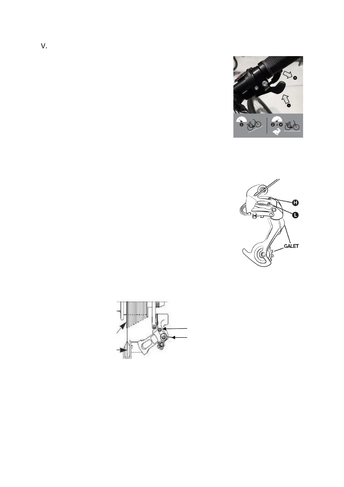La vis H permet d’ajuster la butée externe (côté petit pignon).