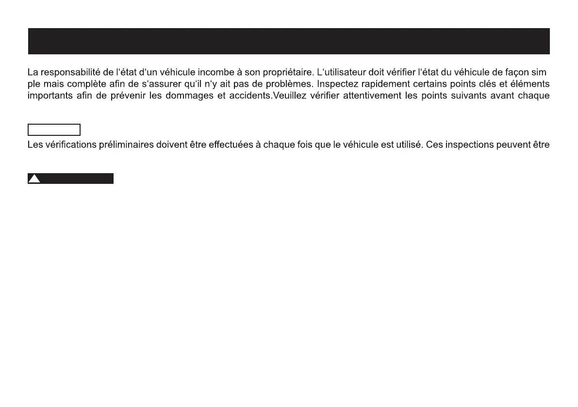 véhicule. Si vous ne parvenez pas à le réparer vous-même, veuillez retourner immédiatement dans un atelier de