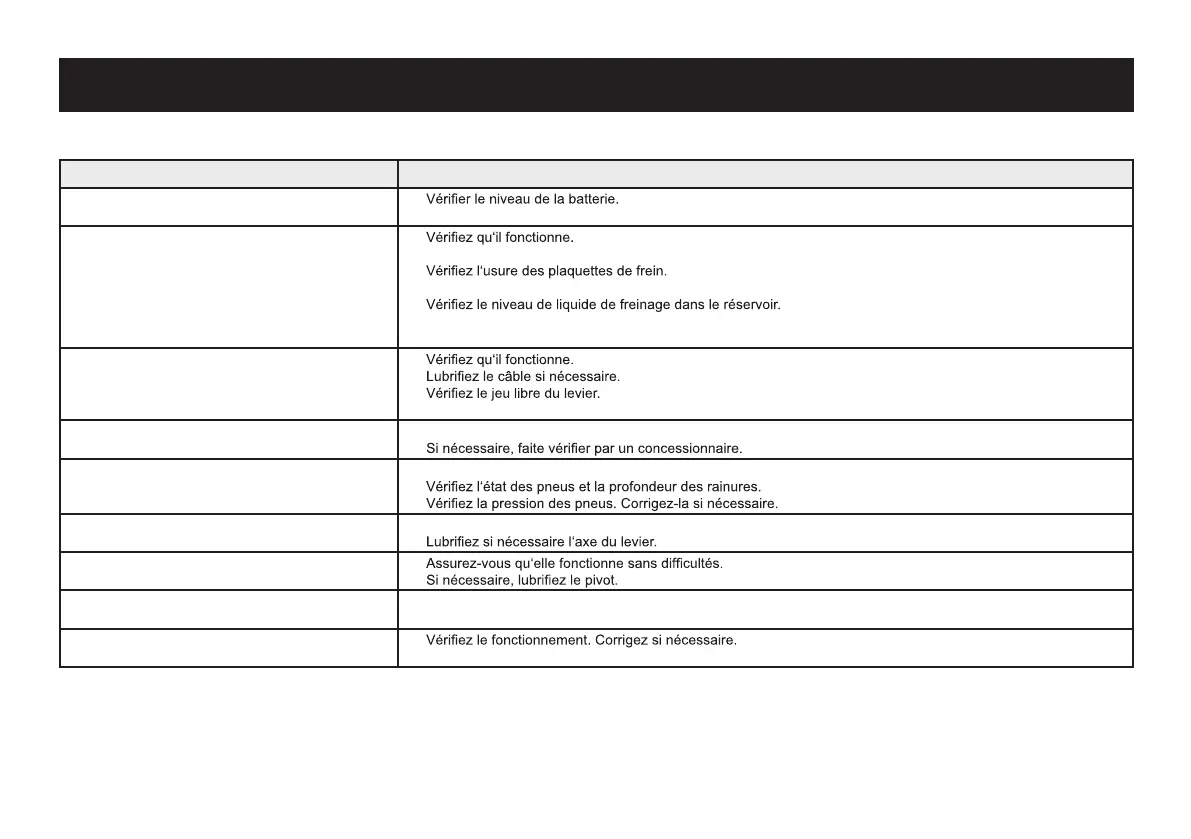 Leviers de freins • Assurez-vous qu‘ils fonctionnent en douceur.