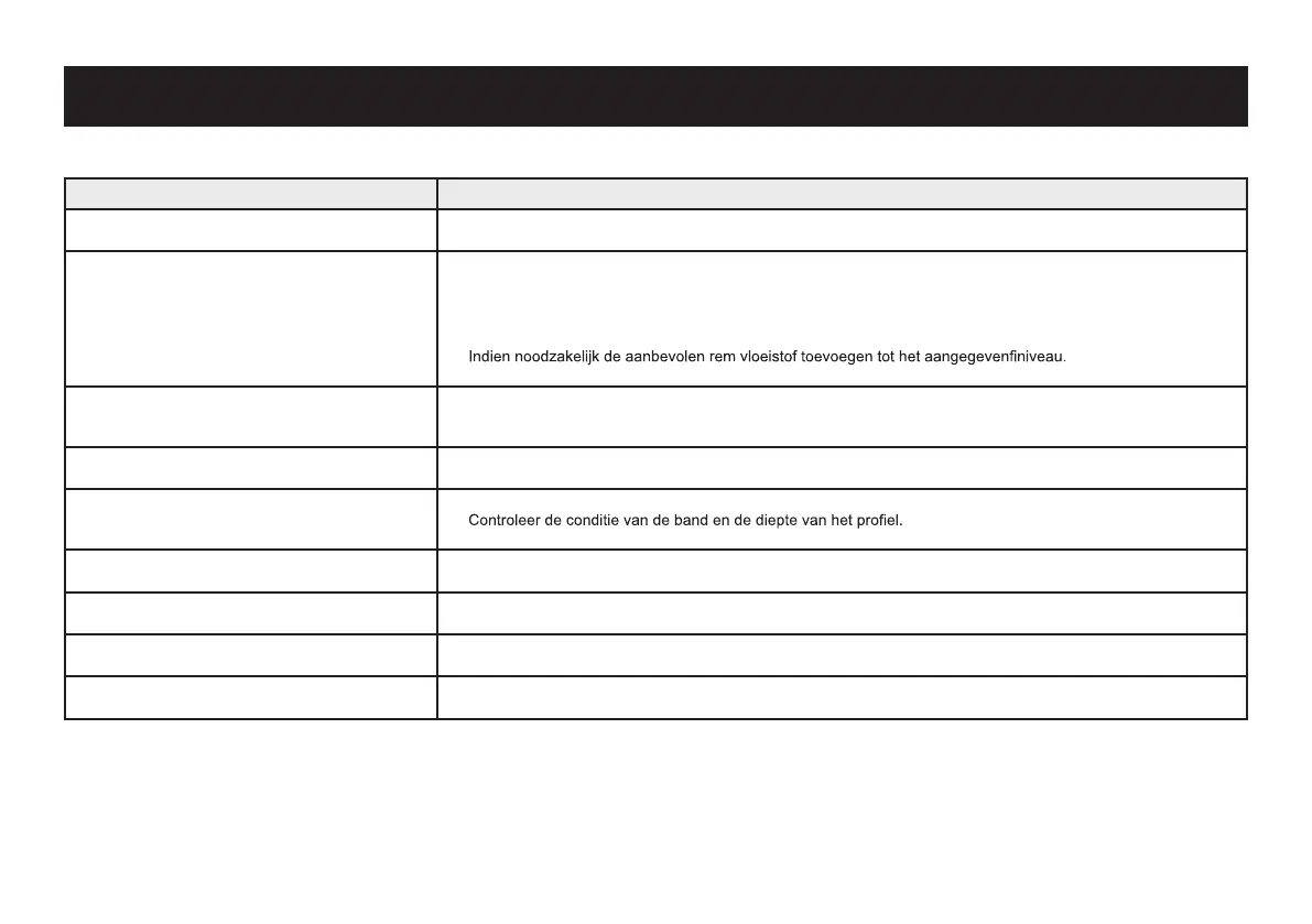 • Als de rem zacht of sponzig aanvoelt dient u de dealer het hydraulisch systeem te laten ontluchten.