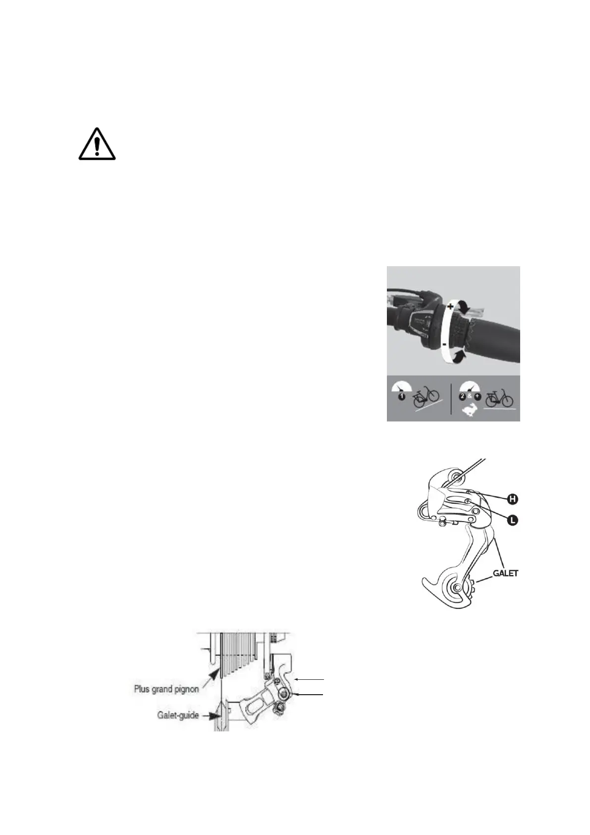El tornillo H permite ajustar el tope inferior (lado piñón pequeño). Si se afloja