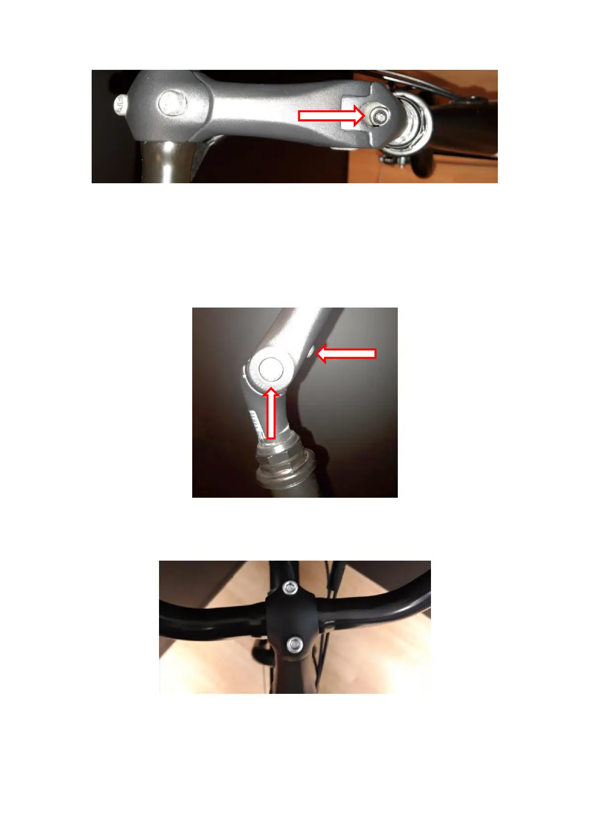 Pentru reglarea înclinării ghidonului, slăbiți șuruburile axului indicate în imaginea de mai jos cu o cheie