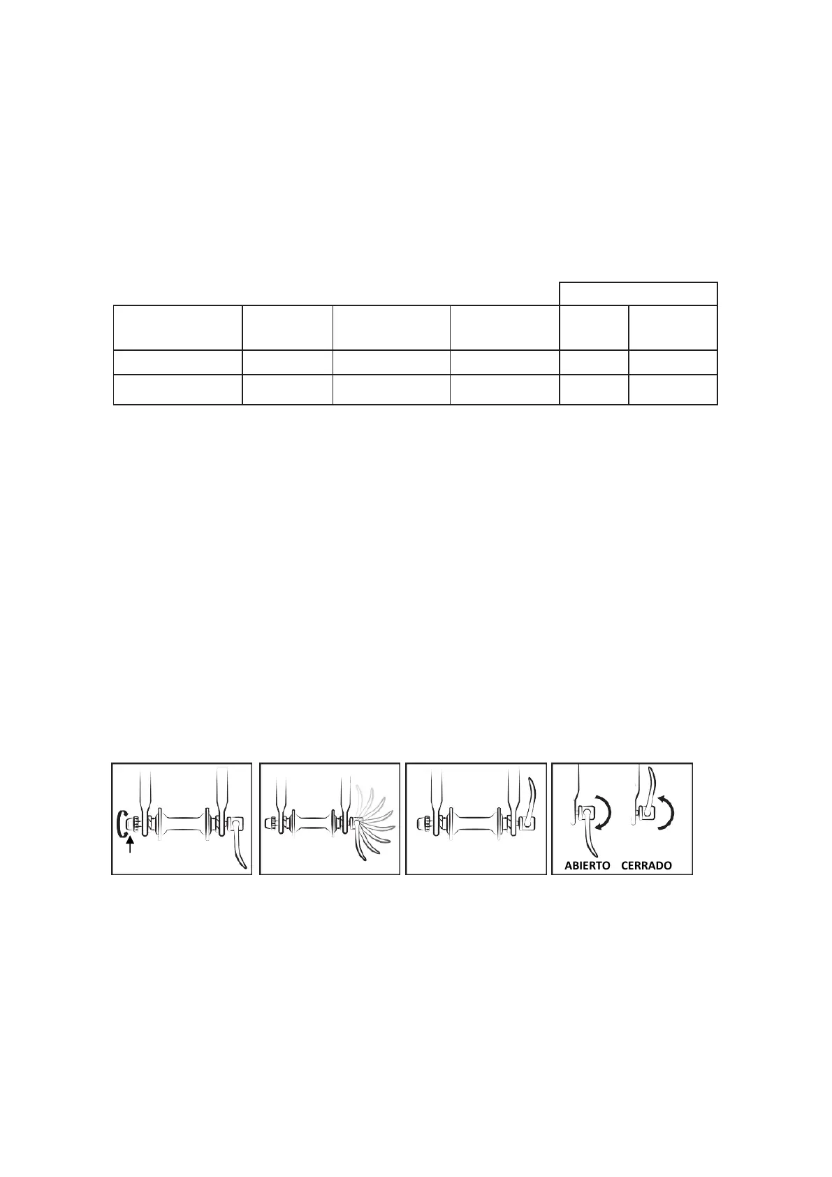 tabla siguiente. La presión debe adaptarse según el peso del usuario.