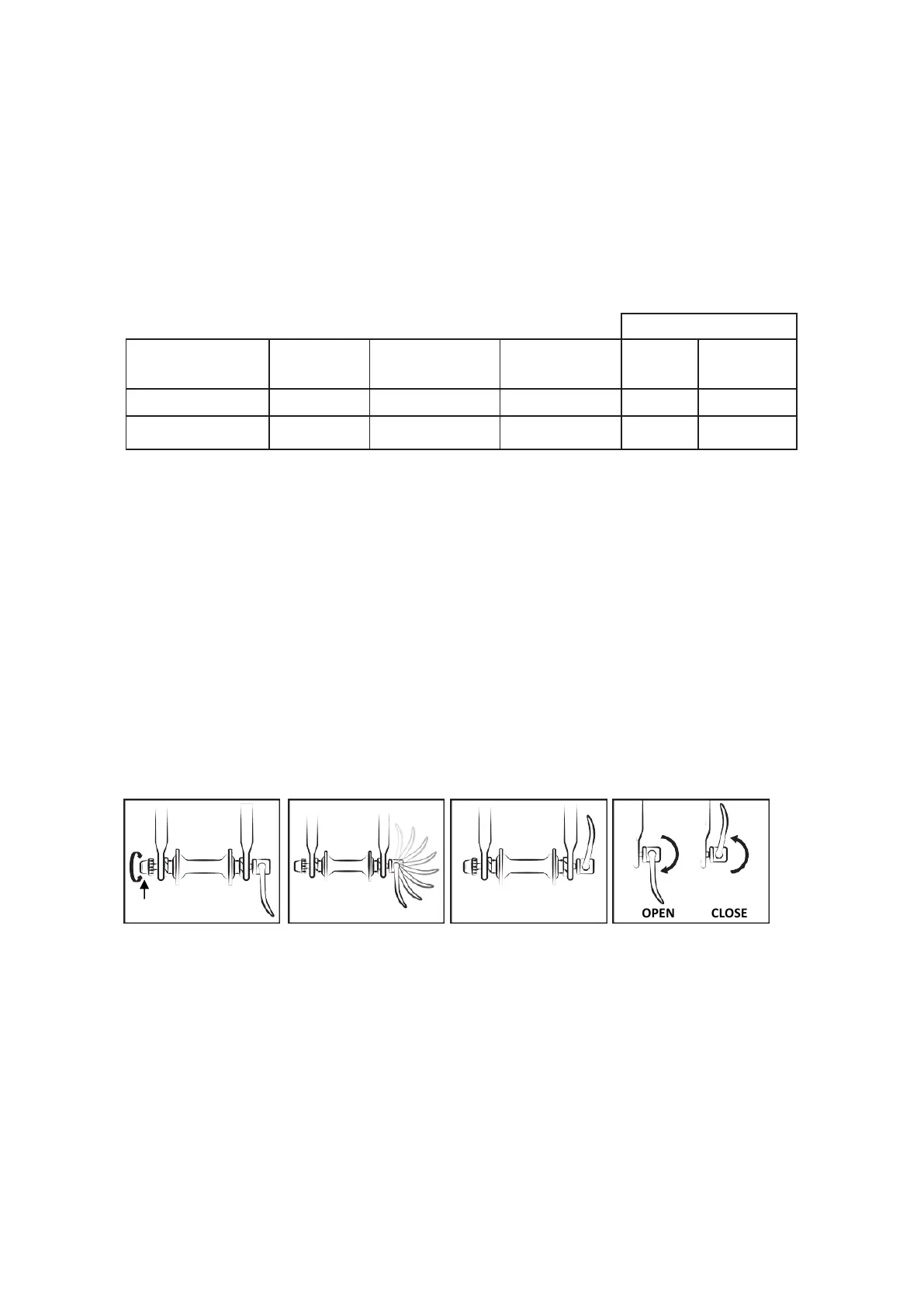 The quick release devices are designed to be operated by hand. Never use tools to lock or unlock the
