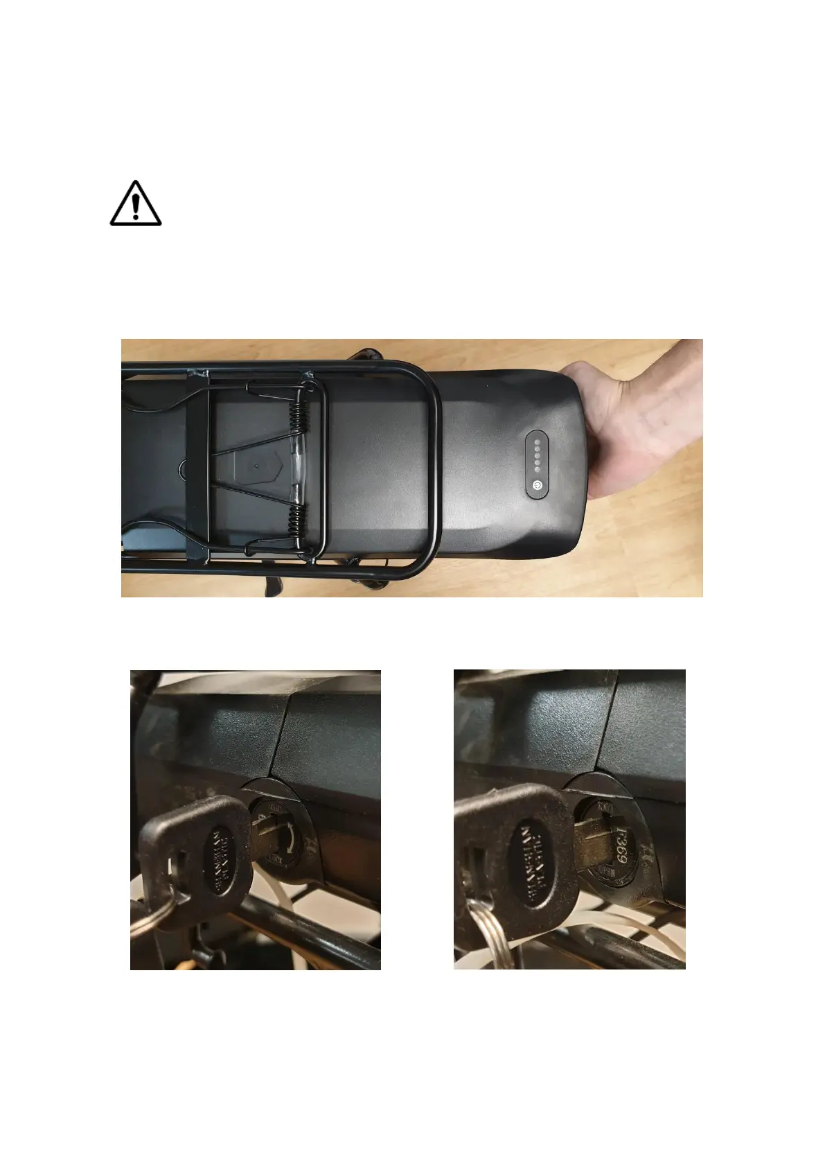 To lock insert the key into the lock and turn it halfway clockwise (battery and luggage rack locked). You