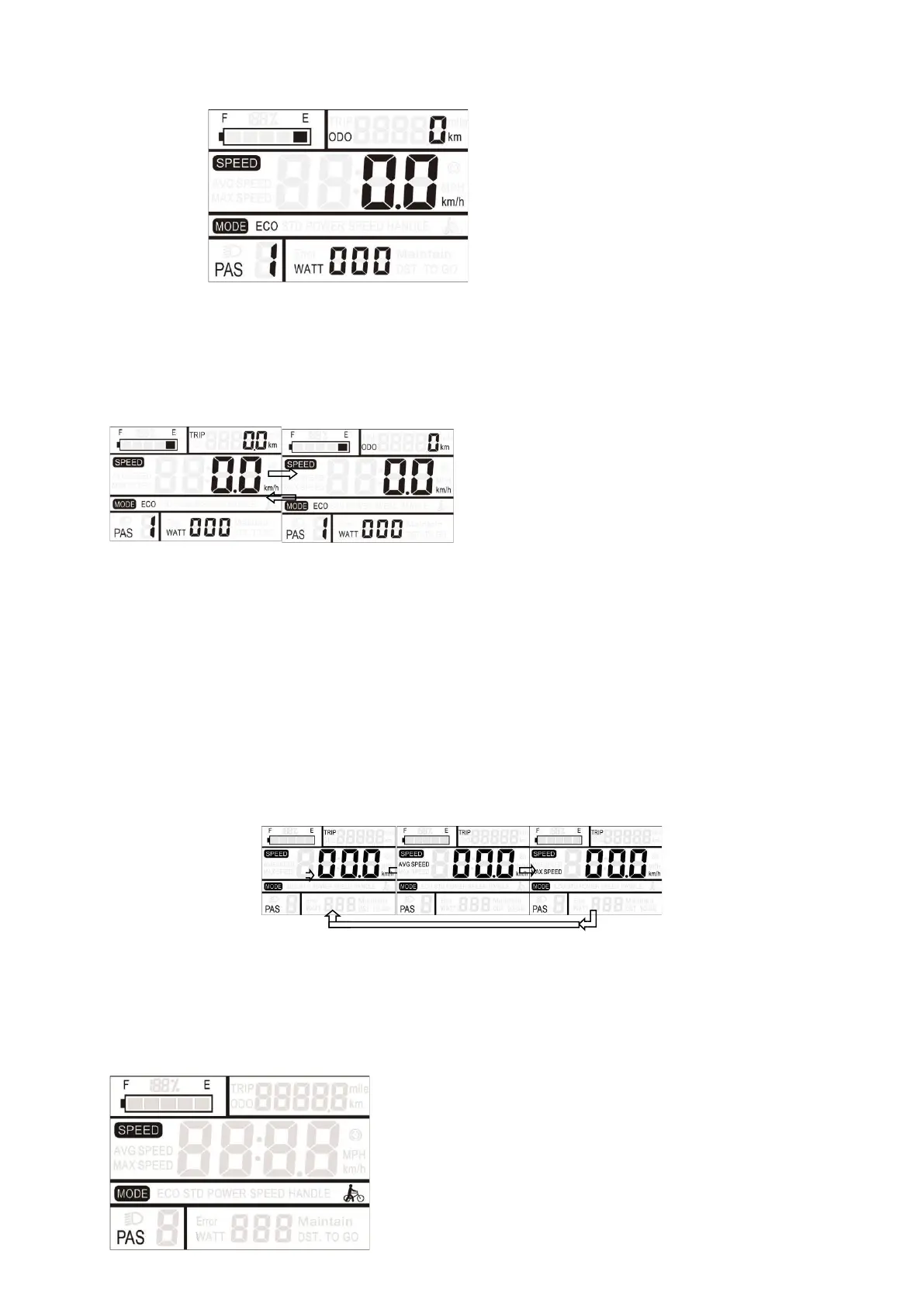 e 【UP】 (Cima) simultaneamente premidos durante 2 segundos para exibir a velocidade máxima