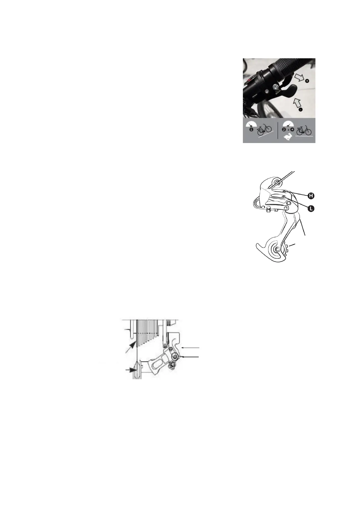 The derailleur's range of movement can be adjusted with the H and L screws.