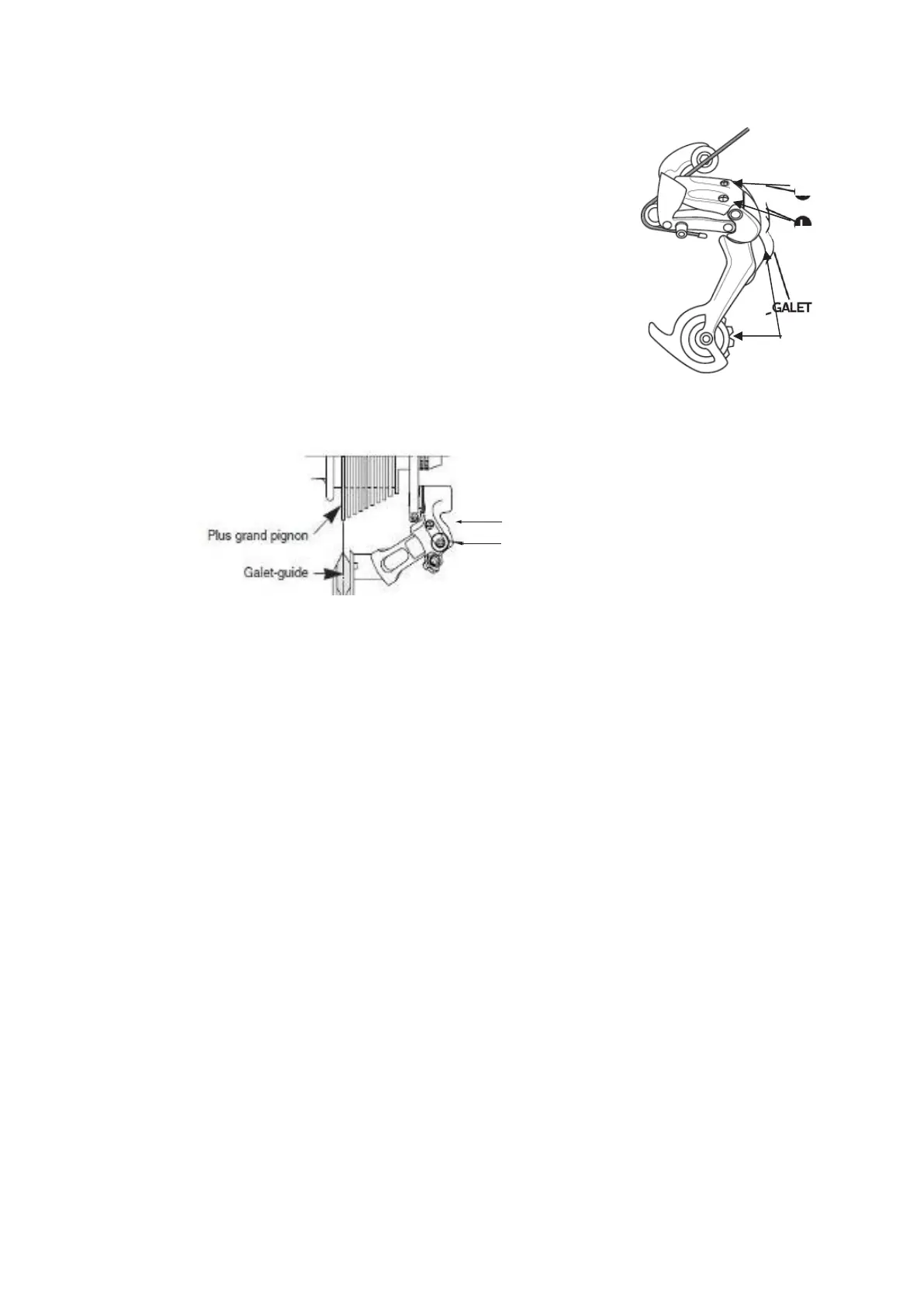 La vite H permette di regolare l’arresto inferiore (lato pignone piccolo).