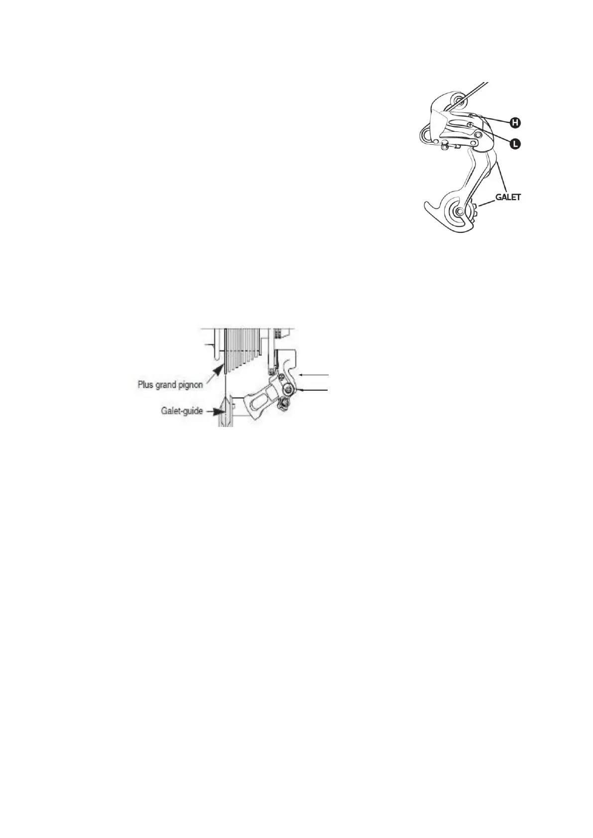 The derailleur’s range of movement can be adjusted with the H and L screws.