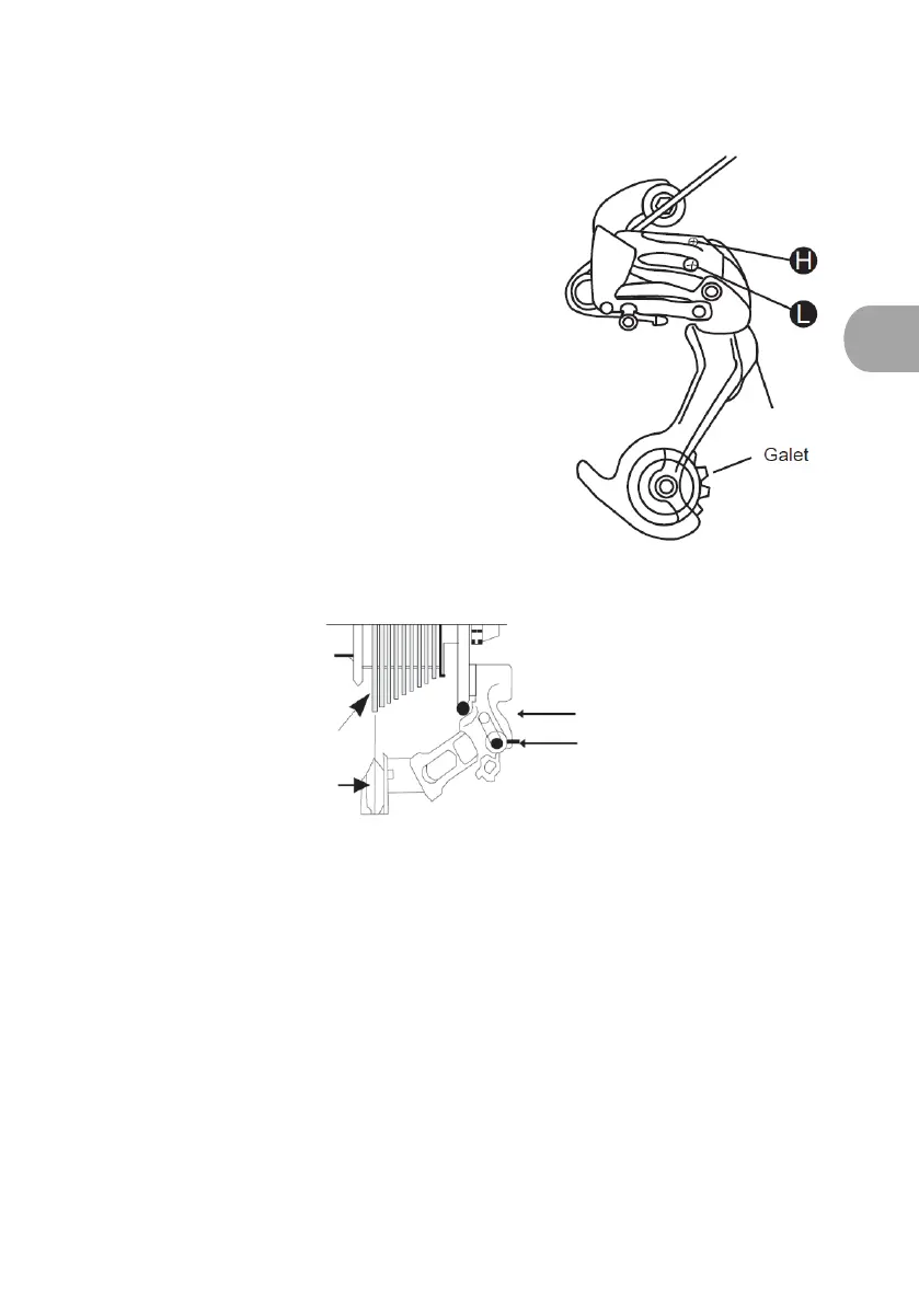 la tensión del cable del desviador y posicionar bien el desviador de