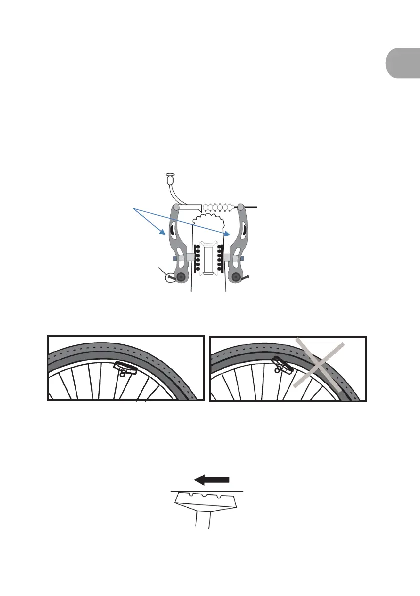 • Réglez la distance entre les patins et la jante, de 1 à 3 mm, afin