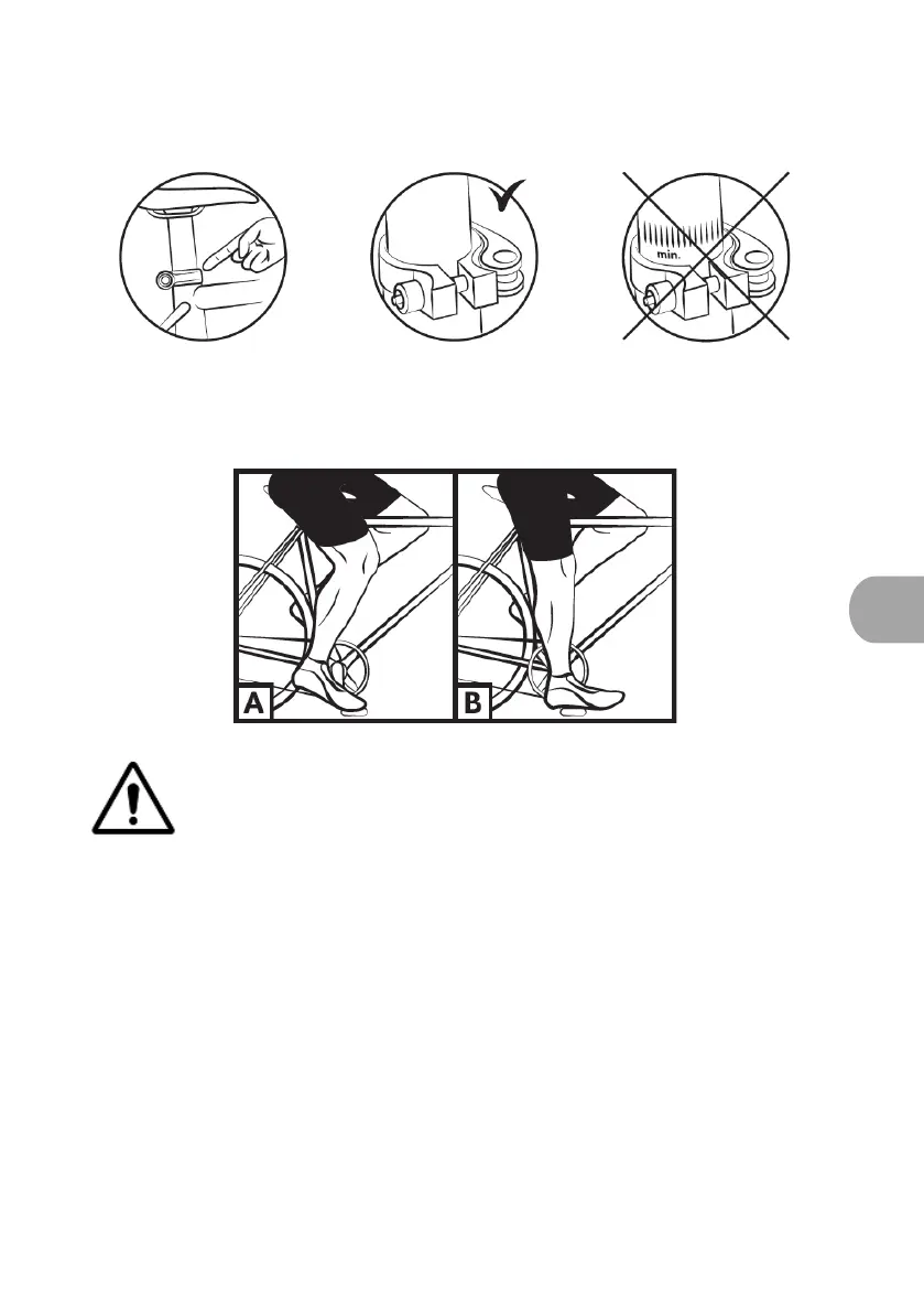 pernas esticadas, com o pé no pedal (fig. B). Ao pedalar, o