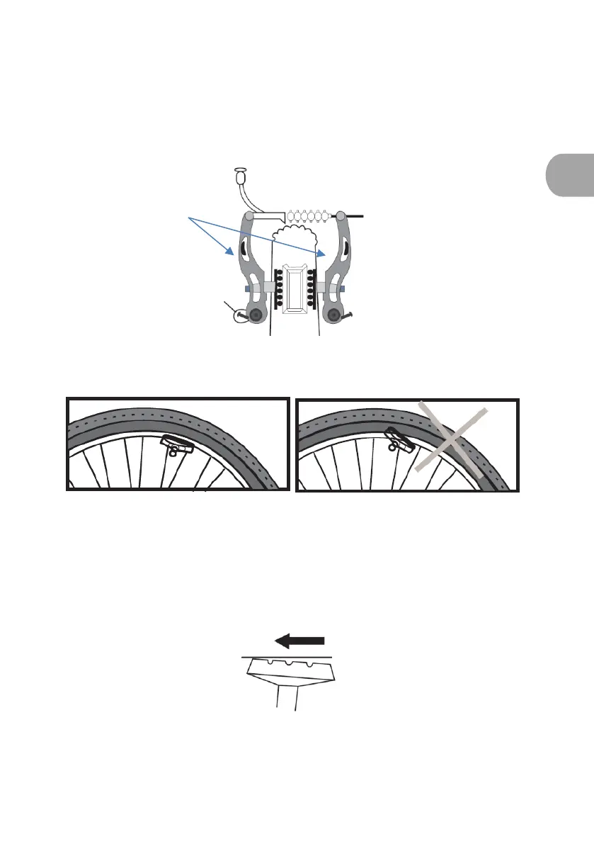 • Den Bremsklotz mit der Seite der Felge ausrichten.
