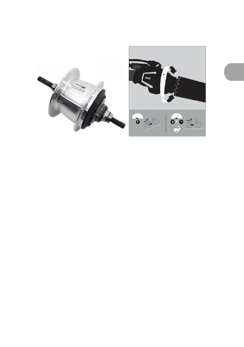 der Gänge erfolgt in der Nabe. Nutzen Sie den rechten Griff, um in
