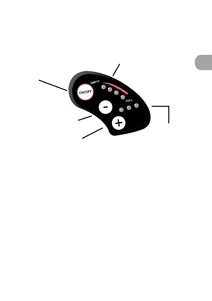 lang gedrückt halten. Die roten LEDS zur Anzeige des Ladestands und