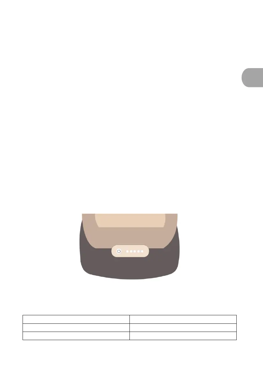 Die 5 LEDs leuchten zur Anzeige des Ladestands auf und schalten sich